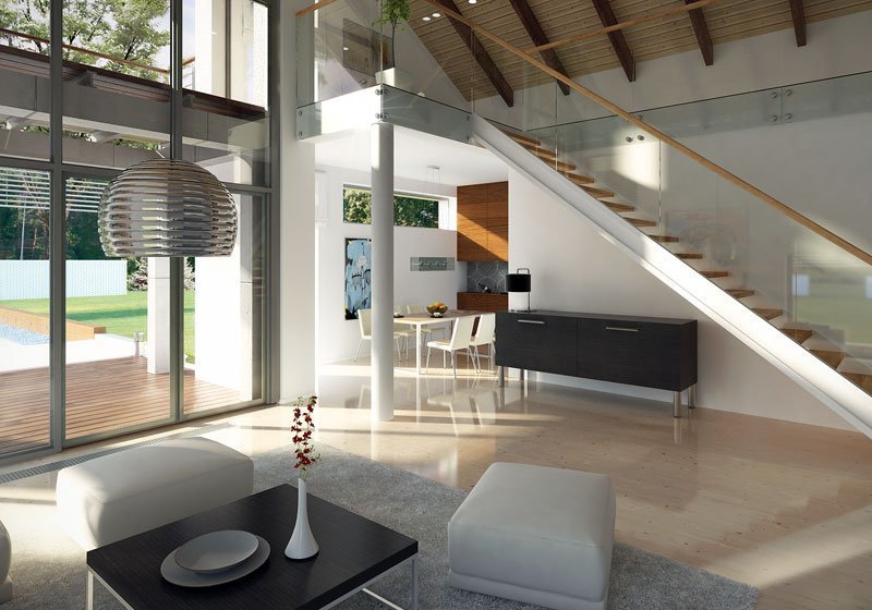 Onyx to projekt przeznaczony dla ludzi lubiących dużą przestrzeń w domu w połączeniu z bardzo nowoczesną architekturą. Interesującym rozwiązaniem jest duża antresola z której mamy widok na bardzo przeszklony i jasny salon. Na parterze oprócz salonu znajdują się 2 pokoje, spora kuchnia i łazienka. Na poddaszu mamy 30m2 sypialnie połączoną z odrębną łazienką i garderobą, oraz antresolę do wykorzystania jako pokój wypoczynkowy. Ciekawe rozwiązanie elewacji zewnętrznej sprawia że Onyks wyróżnia się wśród wielu nowoczesnych projektów