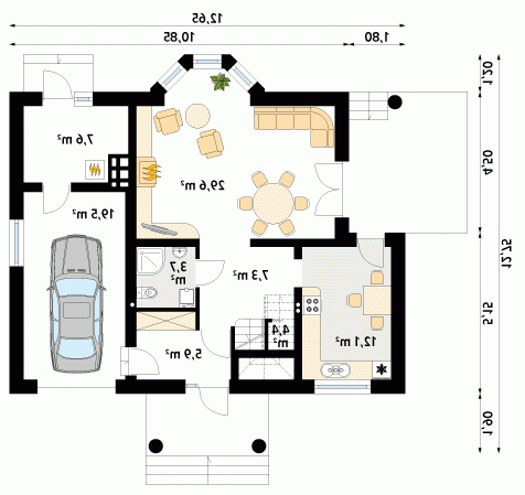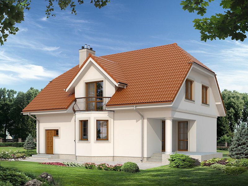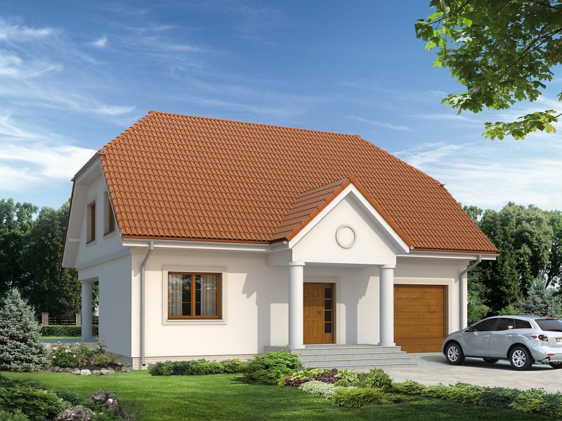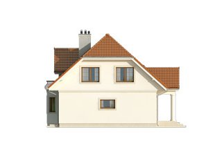 Dom jednorodzinny wolno stojący, parterowy z użytkowym poddaszem. Zapewnia wygodą 5-osobowej rodzinie. Budynek o zwartej bryle z tradycyjnie ukształtowanym dachem. Wyraźny podział na część dzienną na parterze oraz część nocną na poddaszu.
