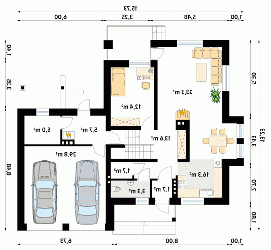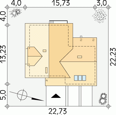 - Min. wymiary działki 22.73x22.23 m