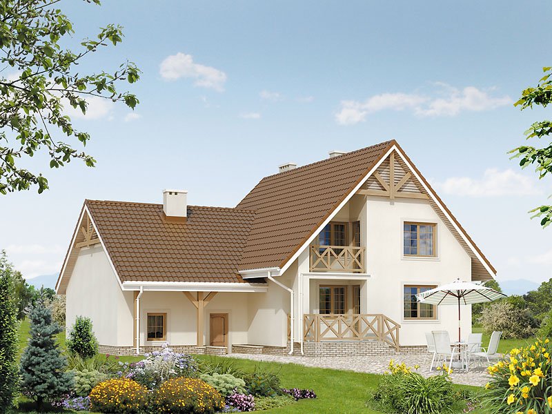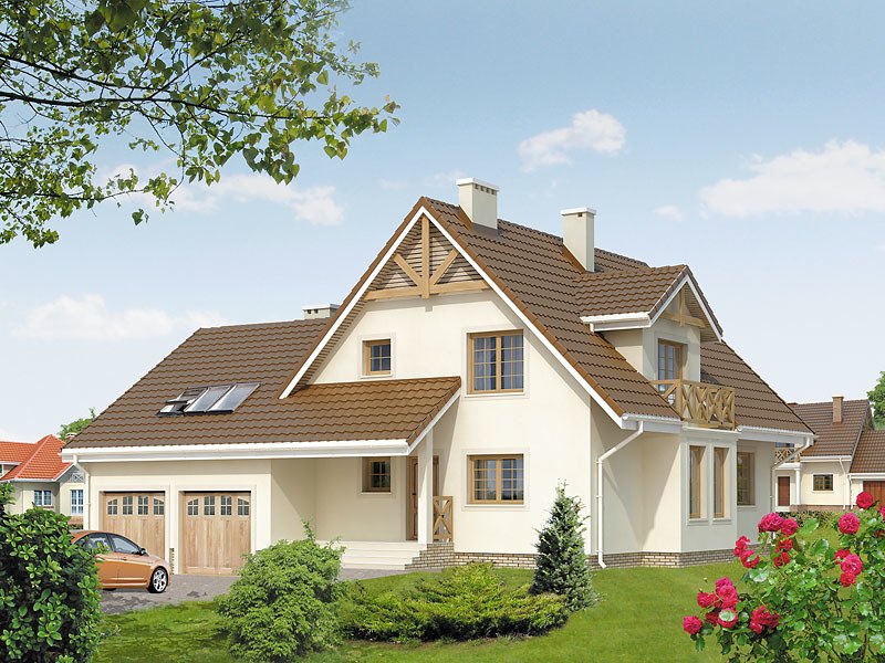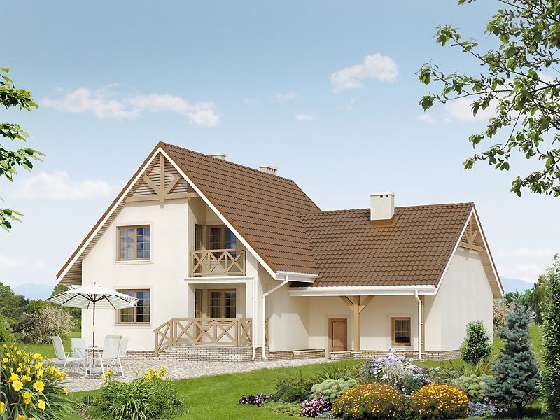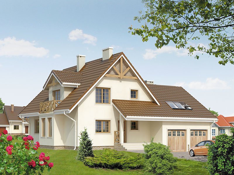 Dom jednorodzinny z użytkowym poddaszem, niepodpiwniczony, z dwustanowiskowym garażem. Czytelny układ funkcjonalny. Dodatkowy pokój na parterze i przestronny strych nad garażem. Łatwy w budowie, ekonomiczny w eksploatacji.