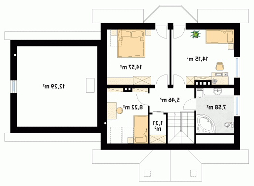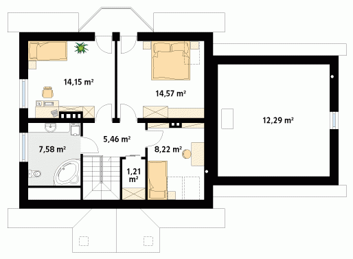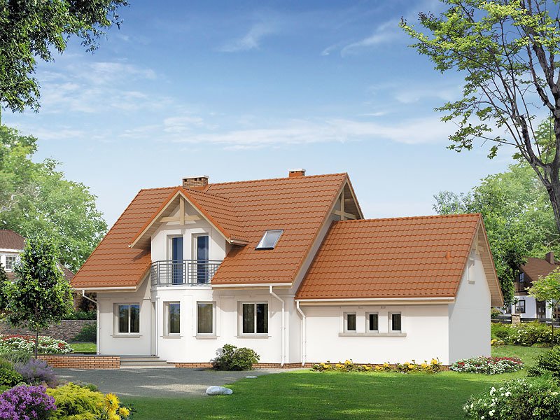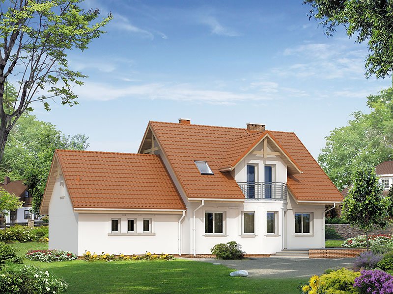 Niepodpiwniczony dom jednorodzinny z użytkowym poddaszem. Garaż dwustanowiskowy. Na parterze dodatkowa sypialnia (gabinet). Przeznaczony dla 4-5 osobowej rodziny.