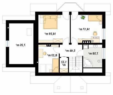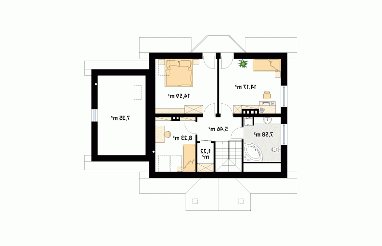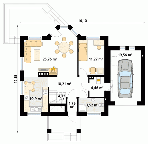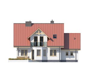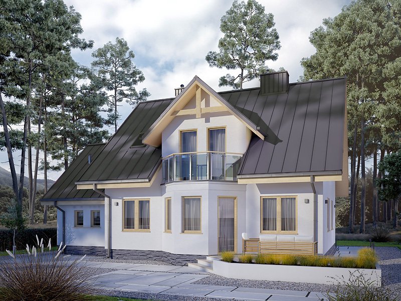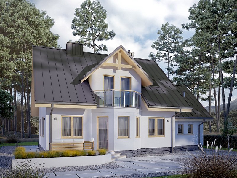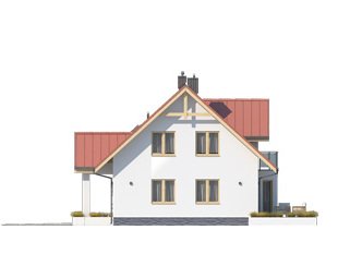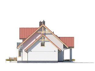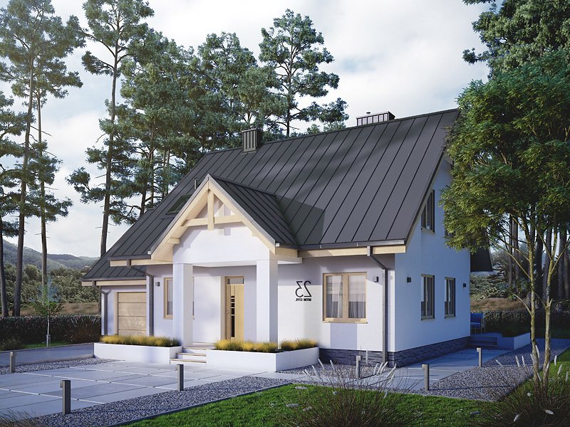 Dom jednorodzinny, parterowy z użytkowym poddaszem i garażem, niepodpiwniczony. Pomimo niewielkich gabarytów zapewnia wygodę 4 – 5-osobowej rodzinie.