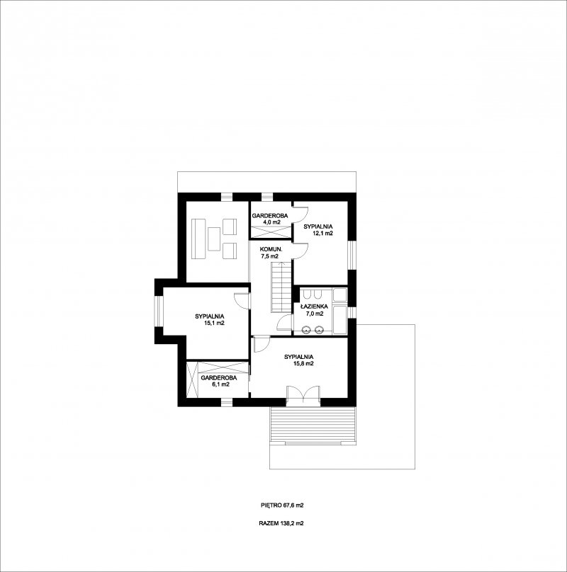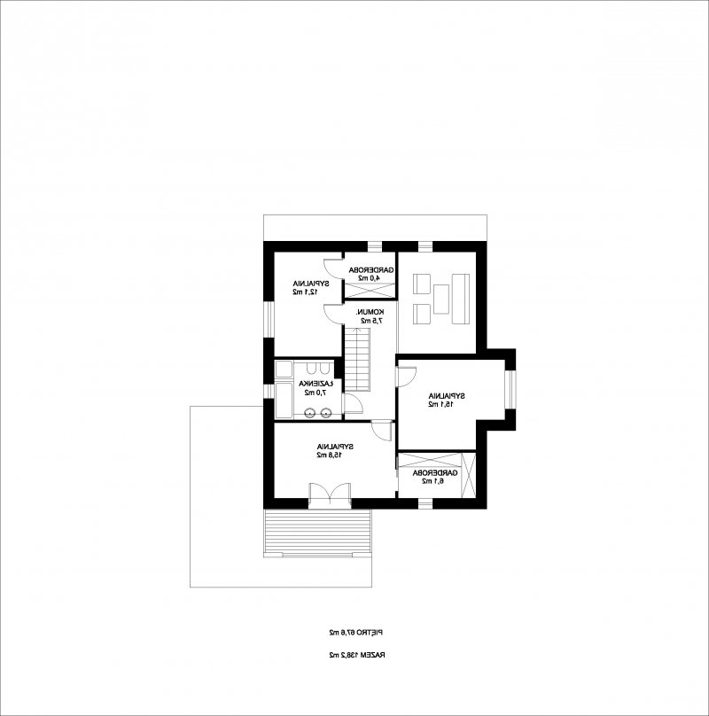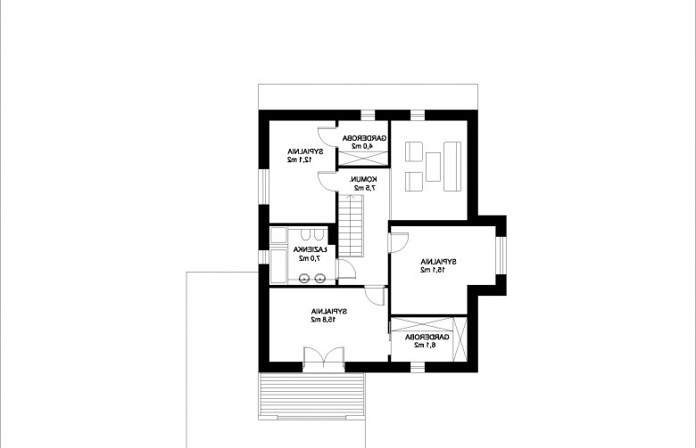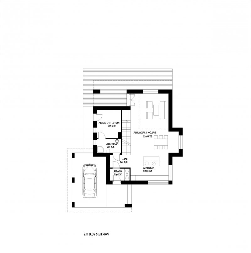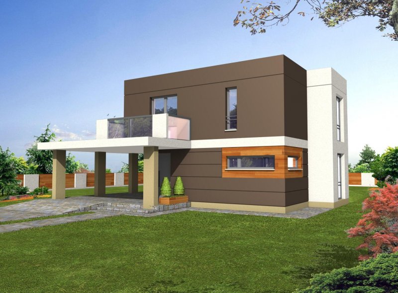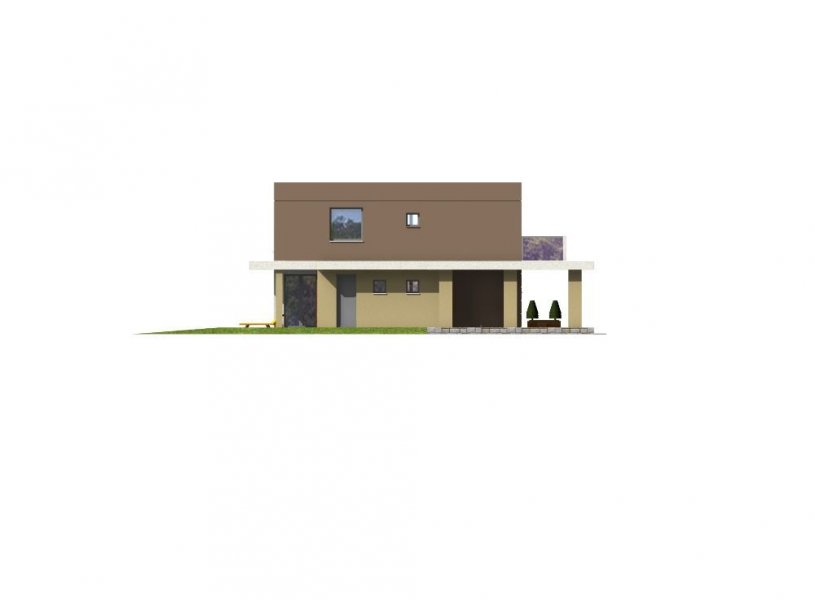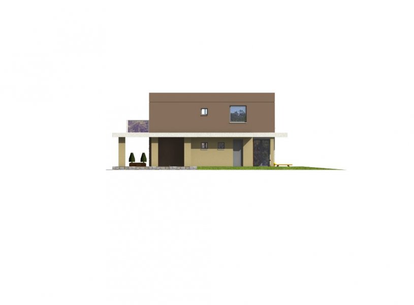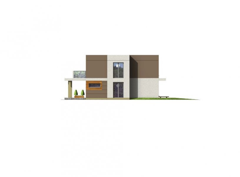 „RON” jest niedużym, wygodnym, piętrowym domem o charakterystycznej, nowoczesnej architekturze. Na parterze znajduje się wiatrołap, hall, otwarta kuchnia z wyspą, przestronna jadalnia doświetlona oknami wykusza, wygodny salon z wyjściem na zadaszony taras oraz łazienka i pomieszczenie gospodarcze z kotłownią. Od frontu zlokalizowano zadaszone miejsce postojowe dla samochodu. Na piętrze znajdują się trzy duże sypialnie, w tym dwie z własnymi garderobami, wygodna ogólnodostępna łazienka i komunikacja z częściowo otwartą przestrzenią nad salonem. Największa sypialnia od frontu posiada własny duży taras. Dom został zaprojektowany z naciskiem na funkcjonalność, ograniczenie kosztów realizacji i eksploatacji dzieki podwyższonym parametrom energooszczędnym.