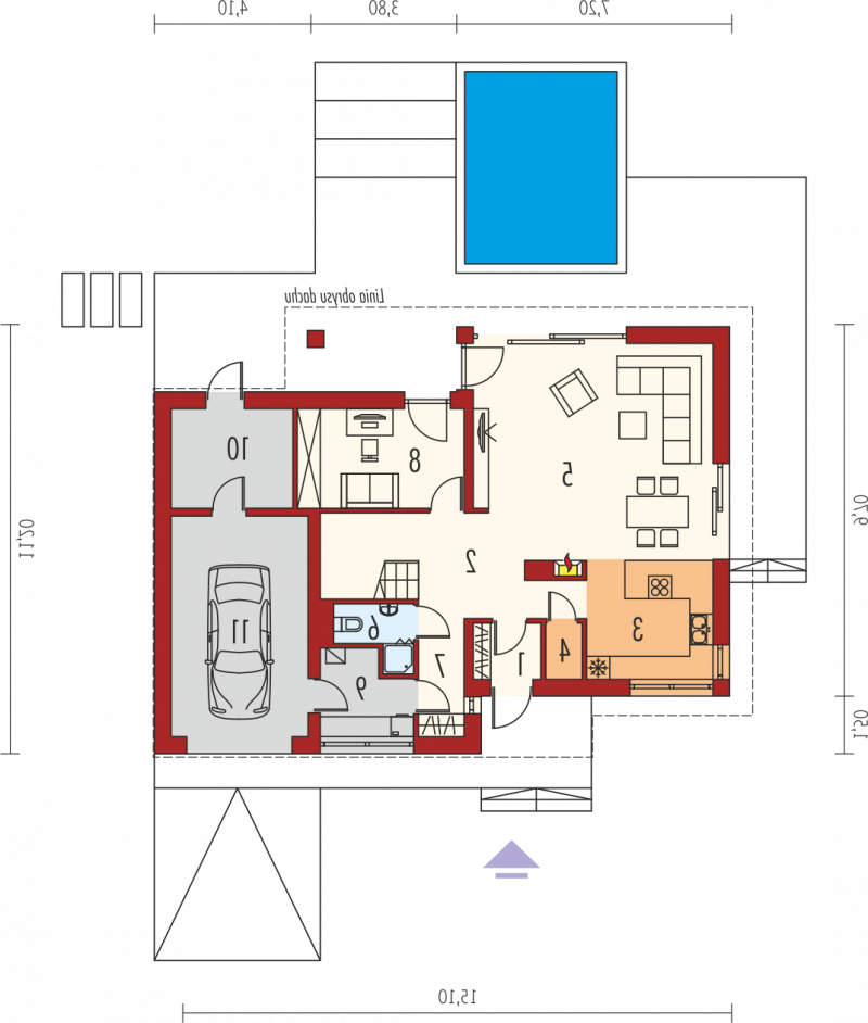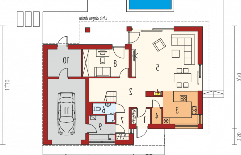 - Dach o konstrukcji drewnianej pokryto dachówką płaską lub inną o podobnych parametrach