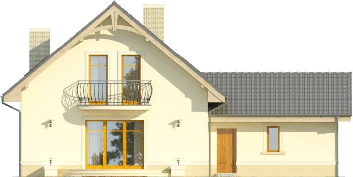 Ściany budynku zaprojektowano z betonu komórkowego z ociepleniem, strop gęstożebrowy, więźbę drewnianą, pokrycie dachówką ceramiczną lub cementową. Elewacje i cokoły tynkowane. Inne materiały w ramach adaptacji.