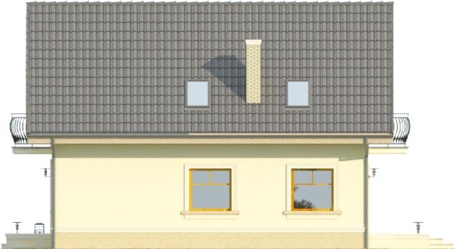 Klasyczny budynek pokryty jest prostym dachem dwuspadowym. Zaokrąglone balkony i duże okna w szczytach dodają mu uroku.