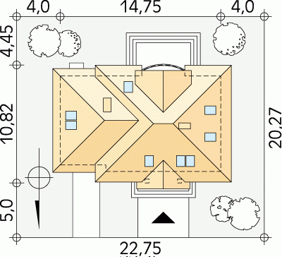 Ściany: 2-warstwowe - pustak ceramiczny + styropian, Stropy: żelbetowe, wylewane, Dach: dachówka, kąt nachylenia 40°