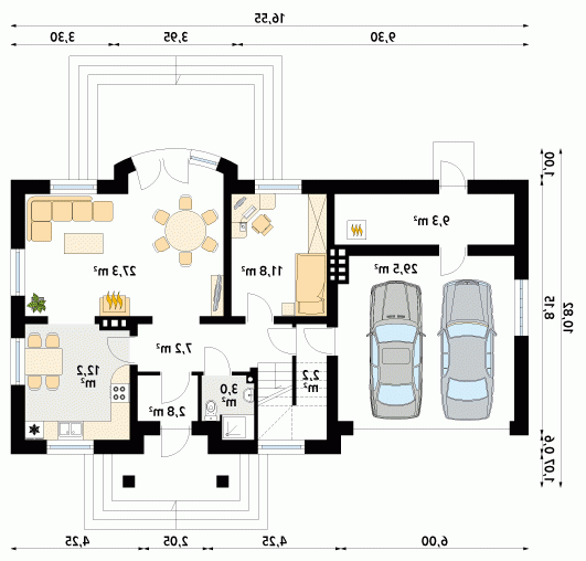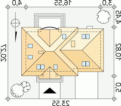 - Min. wymiary działki 23.55x20.27 m