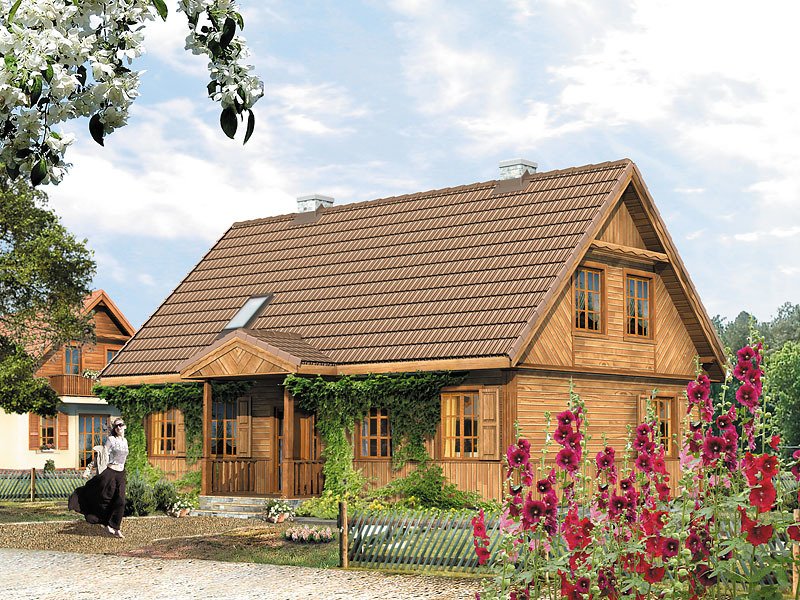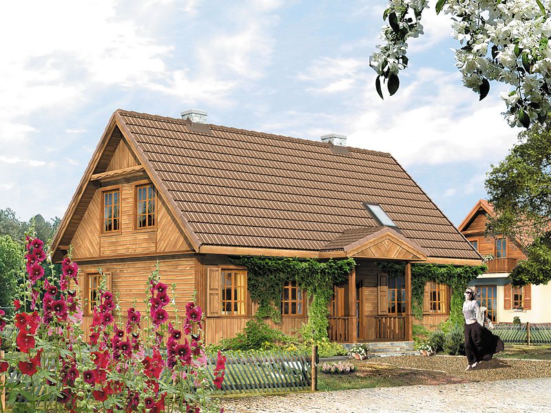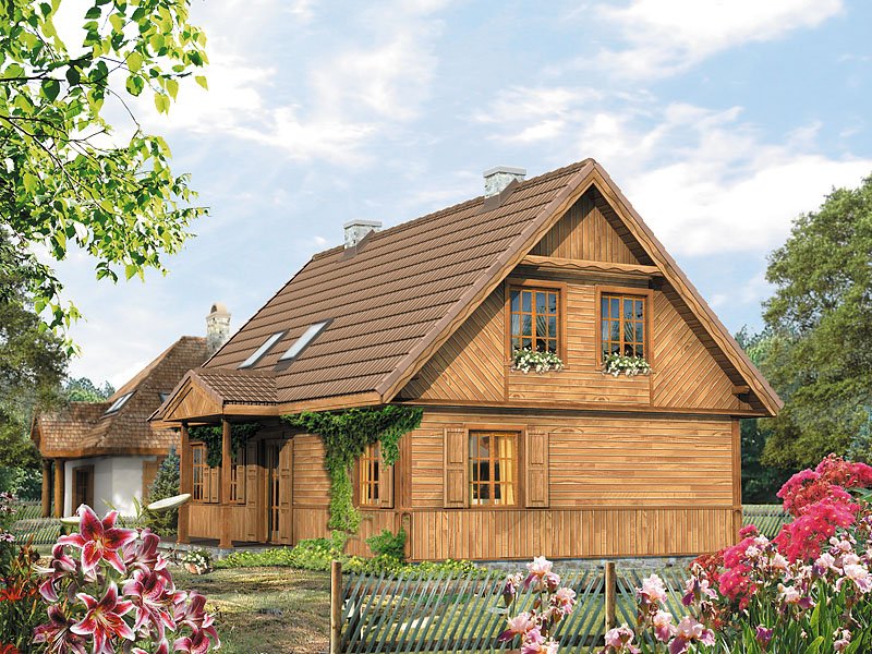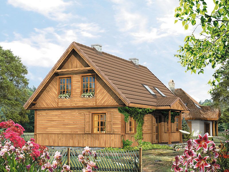 Dom jednorodzinny, parterowy z użytkowym poddaszem, niepodpiwniczony. Dom o charakterze wiejskim. Prosta, tradycyjna bryła typowej, podlaskiej chaty. Na parterze zaprojektowano dodatkowy pokój.
