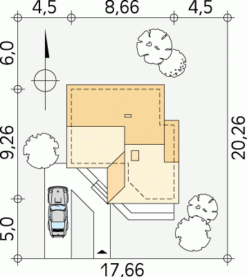 - Min. wymiary działki 17.66x20.26 m