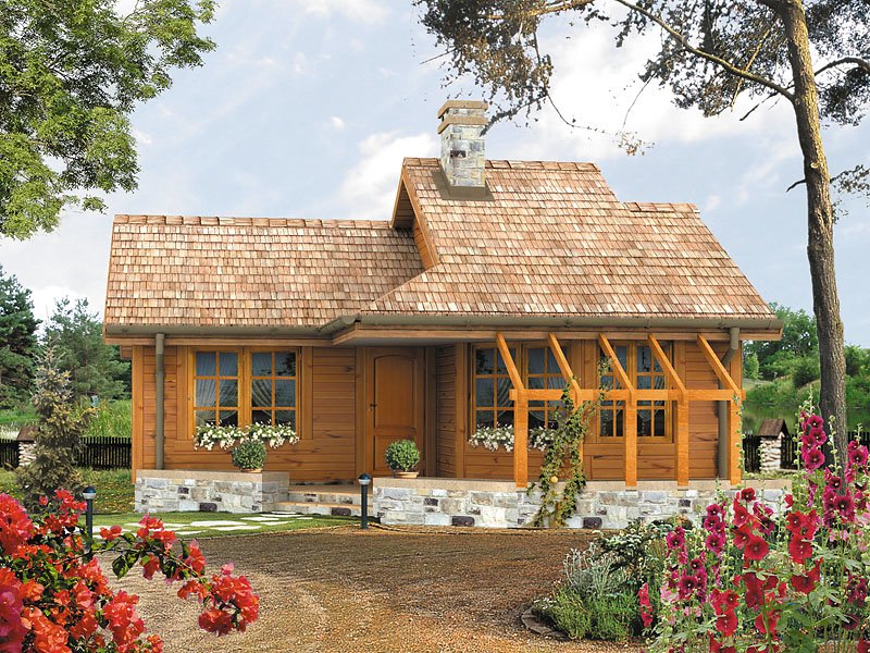 Niewielki dom letniskowy, parterowy, niepodpiwniczony. Na parterze pokój z kominkiem i dwie niewielkie sypialnie. Częściowo zadaszony taras. Istnieje wersja domu jednorodzinnego. SZYPER 6 MIESZKALNY – wersja projektu domu mieszkalnego, jednorodzinnego.
