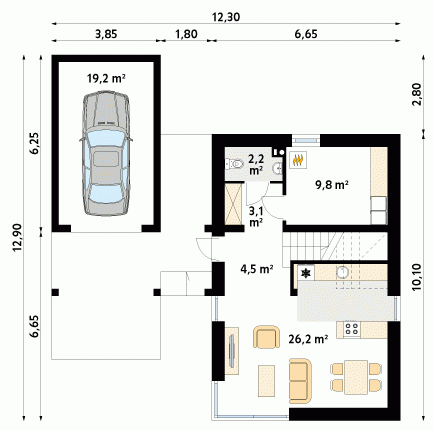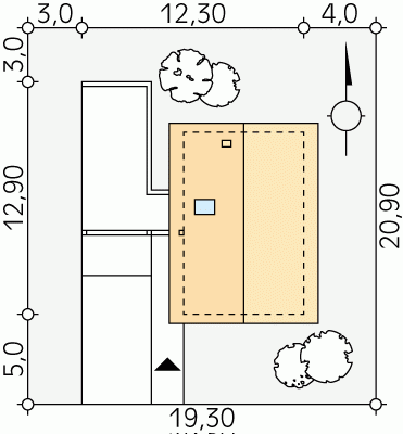 - Min. wymiary działki 19.30x20.90 m