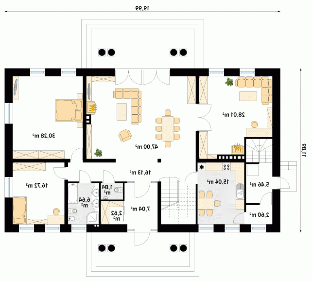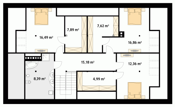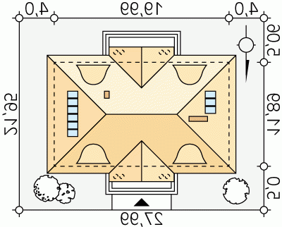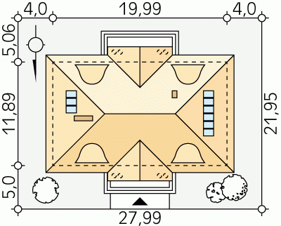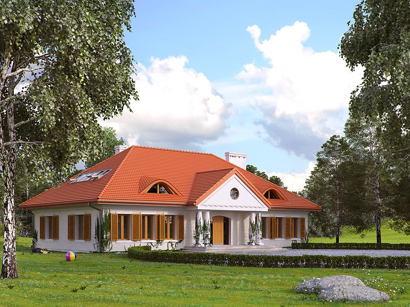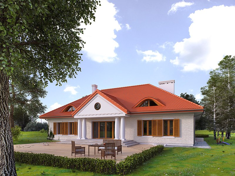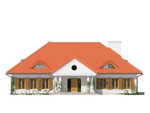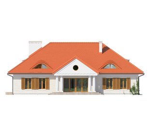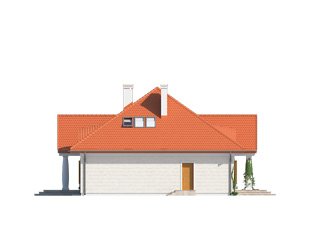 Ściany: 3-warstwowe - pustak ceramiczny + cegła kratówka, Stropy: żelbetowe, wylewane, Dach: dachówka ceramiczna, kąt nachylenia 35°