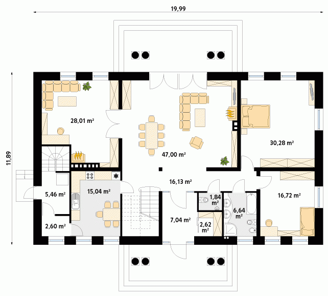 Tercja 7 jest dużym domem jednorodzinnym z poddaszem użytkowym oraz piwnicą utrzymanym w stylu "dworkowym". Projekt szczególnie polecany licznej rodzinie. Na parterze usytuowano strefy: dzienną (kuchnia, salon z jadalnią i gabinet), nocną (dwie sypialnie, łazienka, wc). Na poddaszu znajdują się trzy sypianie z garderobami, łazienka z pralnią oraz ogólnodostępna garderoba. W piwnicy znajduje się duża kotłownia oraz pomieszczenie rekreacyjne. Projekt posiada charakterystyczną bryłę, nawiązującą do tradycji polskiego dworu.