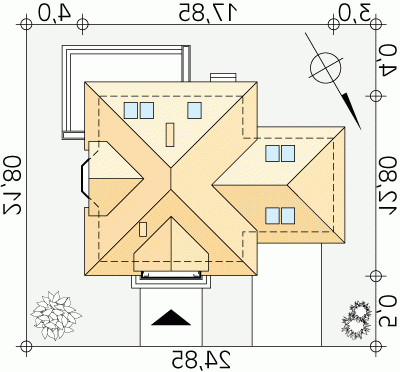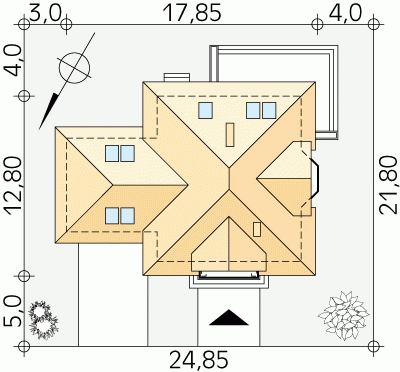 - Min. wymiary działki 24.85x21.80 m