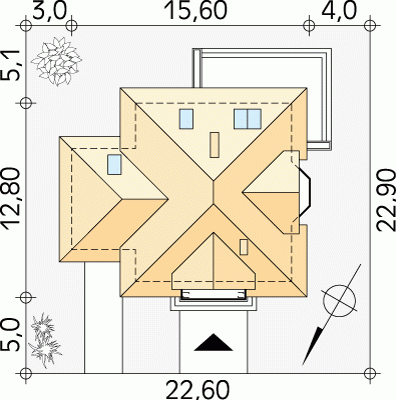 - Min. wymiary działki 22.60x22.90 m