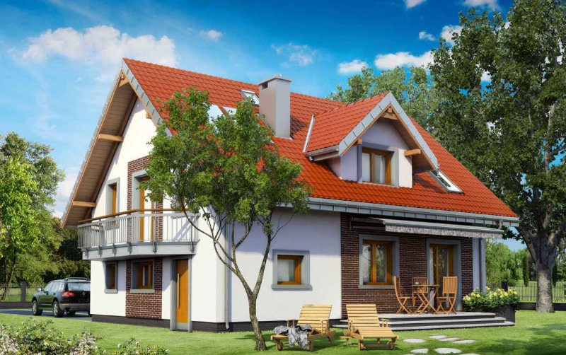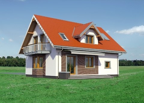 Parterowy dom z użytkowym poddaszem, z częścią gospodarczą przy ścianie bocznej to ekonomiczne rozwiązanie dla inwestorów indywidualnych w budownictwie mieszkaniowym. Takie są projekty domów małych i średnich: Zoja, Zofia i Helena z balkonem na ryzalicie w ścianie szczytowej. Wykorzystują przestrzeń pod dwuspadowym dachem nad obiema częściami budynku na strefę nocną z dwoma łazienkami. Oddzielono w niej różnicą poziomów główną z 4 sypialni. Na parterze jest pokój dzienny z jadalnią, kuchnia oraz przejście do garażu i kotłowni. Projekt domu Zofia Mini Eko jest jednym z mniejszych w Rodzinie Zofii, ale proponuje już dodatkowy pokój przy salonie i dużą łazienkę na parterze. Budynek ma, jak wszystkie wersje z pojedynczym garażem, zwarty obrys części mieszkalnej i garażowej oraz wspólny dla nich dach. Symetryczny rysunek lukarny z balkonem nad wejściem frontowym odróżnia go od Zoi, a łączy z Heleną. Projekt domu Zofia Mini Eko, przy mniejszej skali, zachowuje charakterystyczne dla rodziny Zofii detale: lukarny w obu połaciach i dekoracyjne balkony.