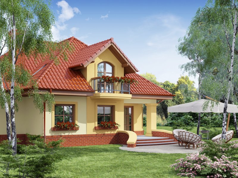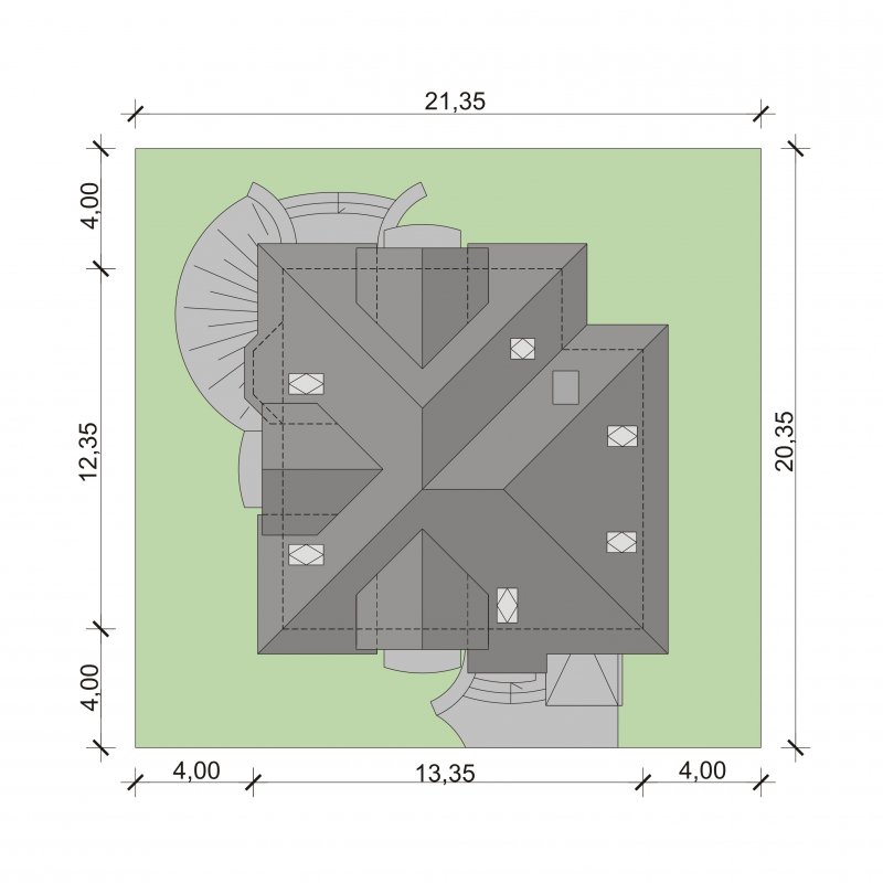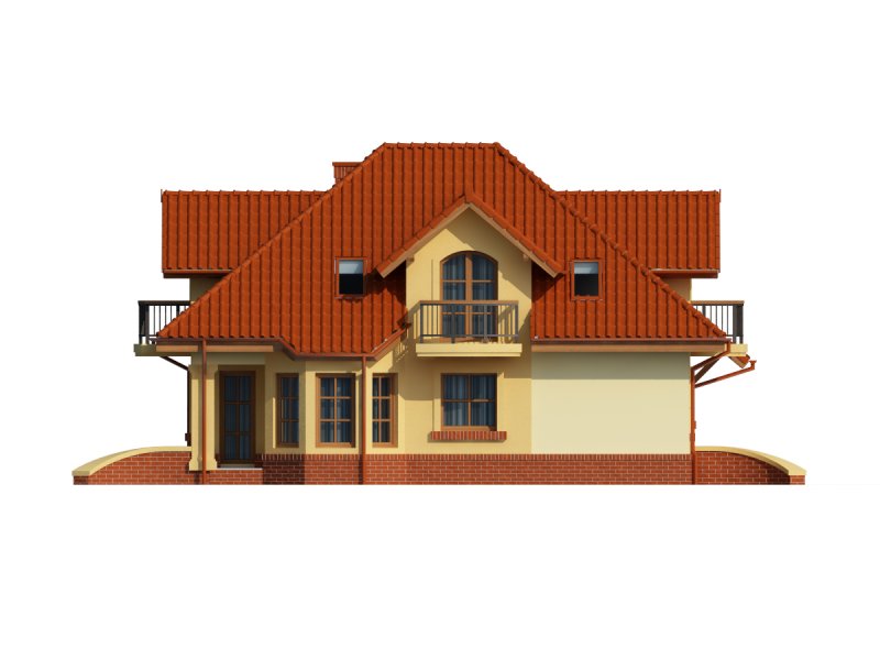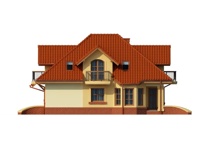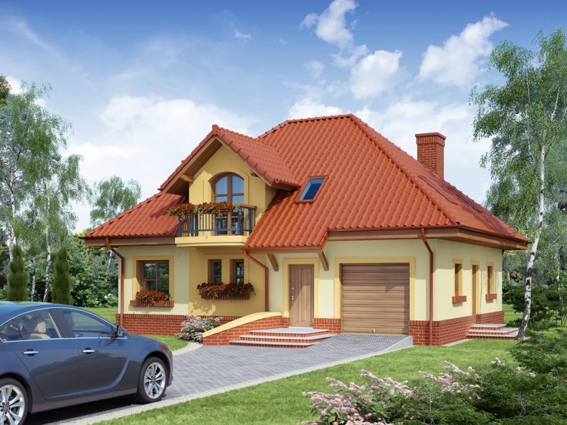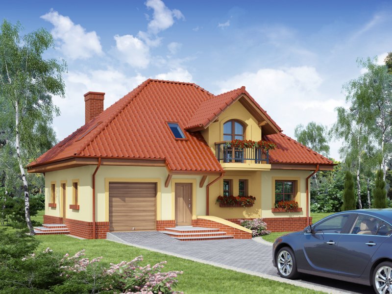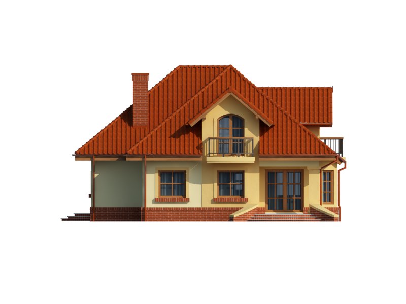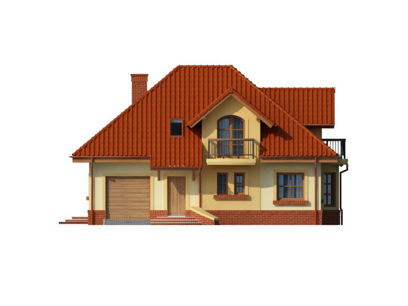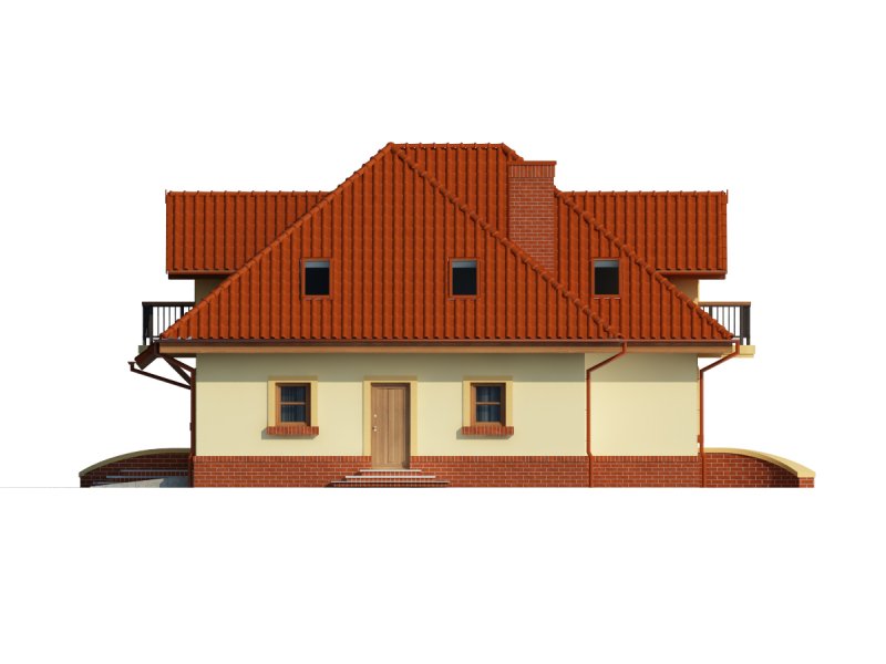 Dom z poddaszem użytkowym, przeznaczony dla 4-5-osobowej rodziny. Na parterze znajduje się przestronny pokój dzienny połączony z jadalnią i otwartą kuchnią. Rozwiązanie funkcjonalne pozwala na wydzielenie ww. pomieszczeń. Wyjście na taras z podcieniem jest możliwe zarówno z części wypoczynkowej pokoju dziennego jak i z części przeznaczonej na jadalnie. Na parterze znajduje się także dodatkowy pokój i łazienka. W bliskim sąsiedztwie kuchni dostępna jest spiżarnia. Na parterze znajduje się pomieszczenie gospodarcze, dostępne poprzez garaż. Na poddaszu znajdują się trzy sypialnie, garderoba dostępna z pokoju, łazienka z wydzielonym aneksem na pralnio-suszarnię oraz pomieszczenie strychu.