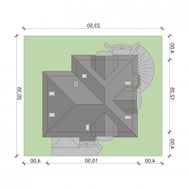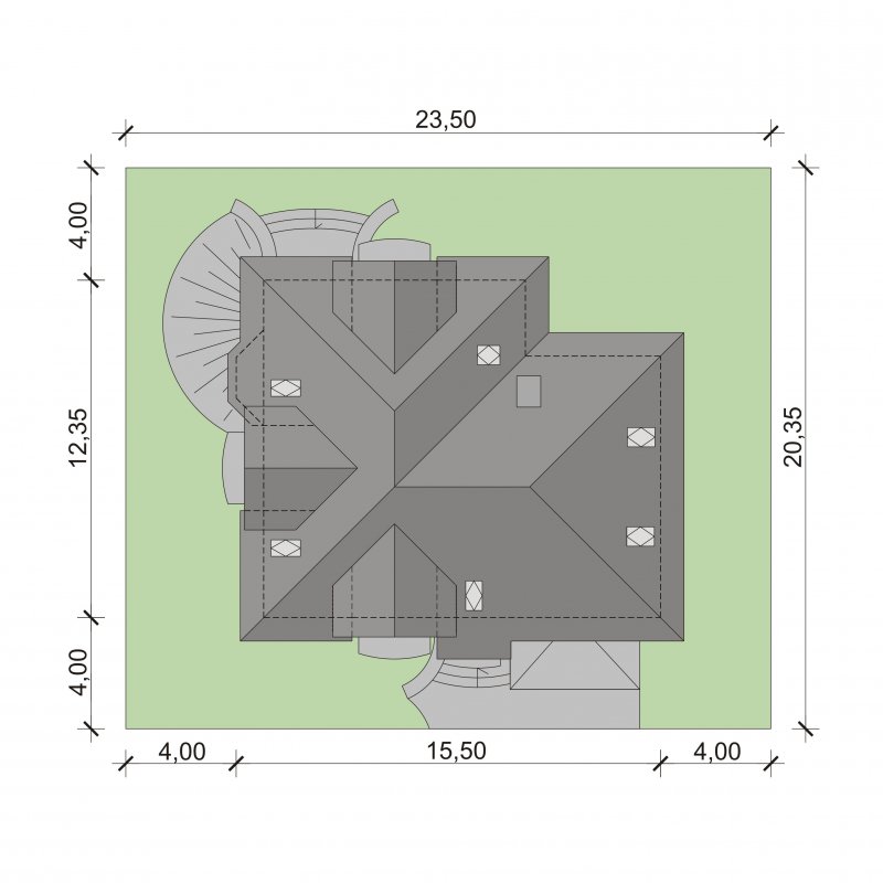 - Min. wymiary działki 23.50x20.35 m