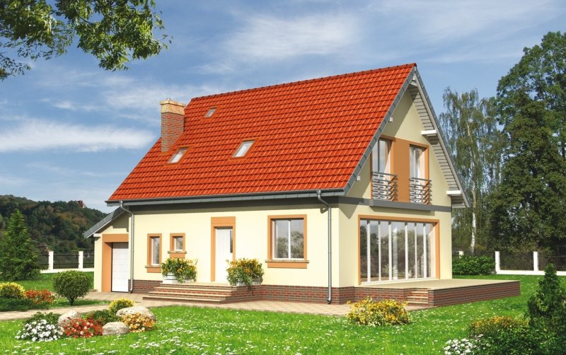 Dom parterowy, z użytkowym poddaszem, z garażem.