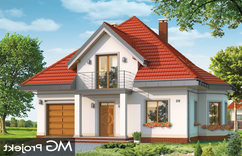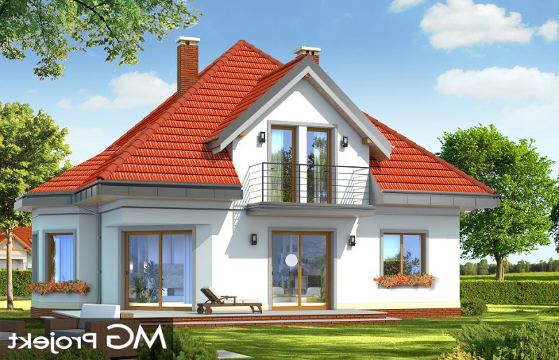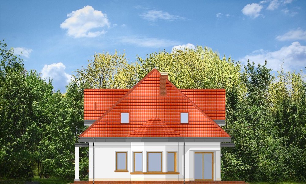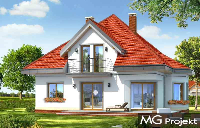 Agatka to dom dla cztero-pięcioosobowej rodziny, budynek parterowy z poddaszem użytkowym przykryty kopertowym, czterospadowym dachem. Dom zaprojektowano w spokojnej stylistyce z przenikającymi się tradycyjnymi i nowoczesnymi detalami. Zwarta bryła budynku z wbudowanym garażem, została ozdobiona lukarnami z balkonami, wykuszem jadalni, oraz narożnym podcieniem salonu. Prosta, czytelna bryła podkreśla elegancję zewnętrznej architektury budynku. Przestrzeń parteru zaprojektowano w taki sposób, aby wszystkie pomieszczenia otaczały hol i centralnie usytuowane schody. Część dzienną stanowią hol, salon, jadalnia i kuchnia - pomieszczenia tworzące jedno otwarte wnętrze, są jednak częściowo od siebie oddzielone. W części gospodarczej na parterze zaprojektowano garaż, kotłownię i dodatkowe pomieszczenie (może ono być również zaadaptowane na dodatkowy pokój - np. gabinet). Na poddaszu mieszczą się trzy duże sypialnie z garderobą i szafami wbudowanymi, oraz przestronna łazienka - pokój kąpielowy. Na niewielkiej powierzchni udało się zaprojektować funkcjonalne wnętrza z przestronnymi, ustawnymi pokojami. Projekt dostępny jest także w wersji odbicia lustrzanego.