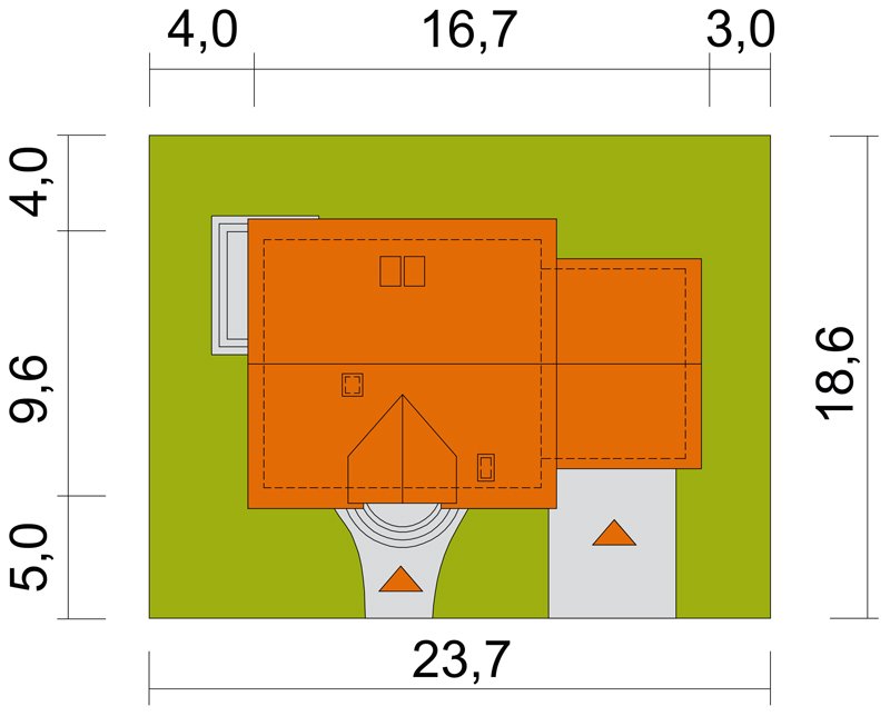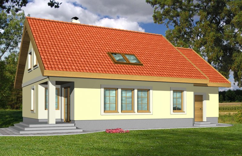 "Agatka” to piękny parterowy domek z użytkowym poddaszem. Prostota widoczna jest zarówno w wyglądzie zewnętrznym, układzie funkcjonalnym wnętrza jak i w rozwiązaniach konstrukcyjnych, przez to staje się on łatwy i niedrogi w budowie. Niejednokrotnie domek ten staje się wymarzoną Agatką dla 4-ro, 5-cio osobowej rodziny.