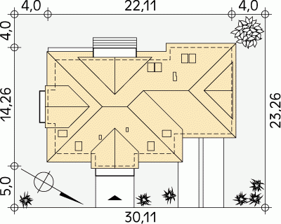 - Min. wymiary działki 30.11x23.26 m