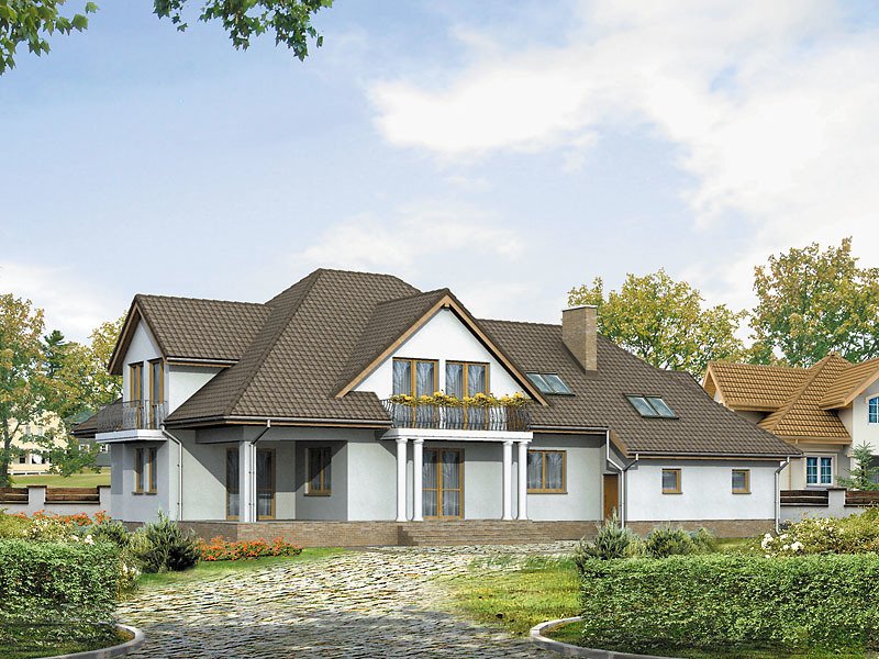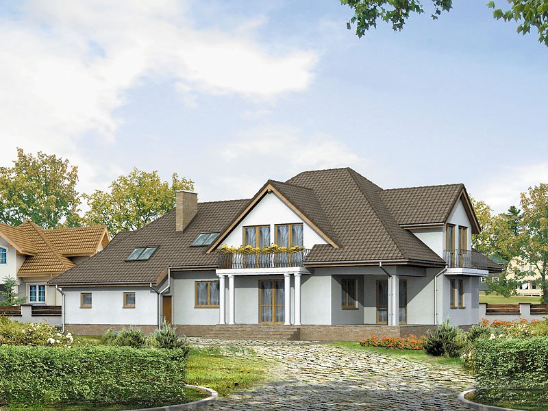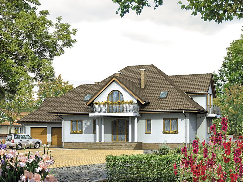 Wolno stojący dom jednorodzinny, niepodpiwniczony z podwójnym garażem. Reprezentacyjne wejście do domu, zadaszony taras ogrodowy dostępny z pokoju dziennego i jadalni. Na poddaszu trzy sypialnie z dwiema łazienkami. Duże pomieszczenie hobby nad garażem. GRACJA – inna wersja projektu.
