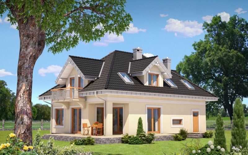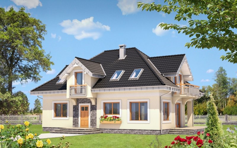 Amanda to dom parterowy z użytkowym poddaszem, niepodpiwniczony. Bryłę Amandy przykryta rzadko stosowanym, malowniczym, czterospadowym dachem. W każdej z połaci dachu Amandy osadzono lukarnę z balkonem. Poddasze jest dzięki temu bardziej przestronne, a każdy, z co najmniej pięciorga domowników, dysponuje najbardziej chyba pożądanym rodzajem sypialni - pokojem z „facjatką”. Na parterze domu rozlokowano jednoprzestrzenną, rozległą strefę życia rodzinnego i towarzyskiego: salon, kuchnię i łazienkę. Narożna lokalizacja kotłowni, jej wielkość i dodatkowy dostęp z zewnątrz pozwalają na adaptację instalacji c.o. w Amandzie do każdego rodzaju paliwa.