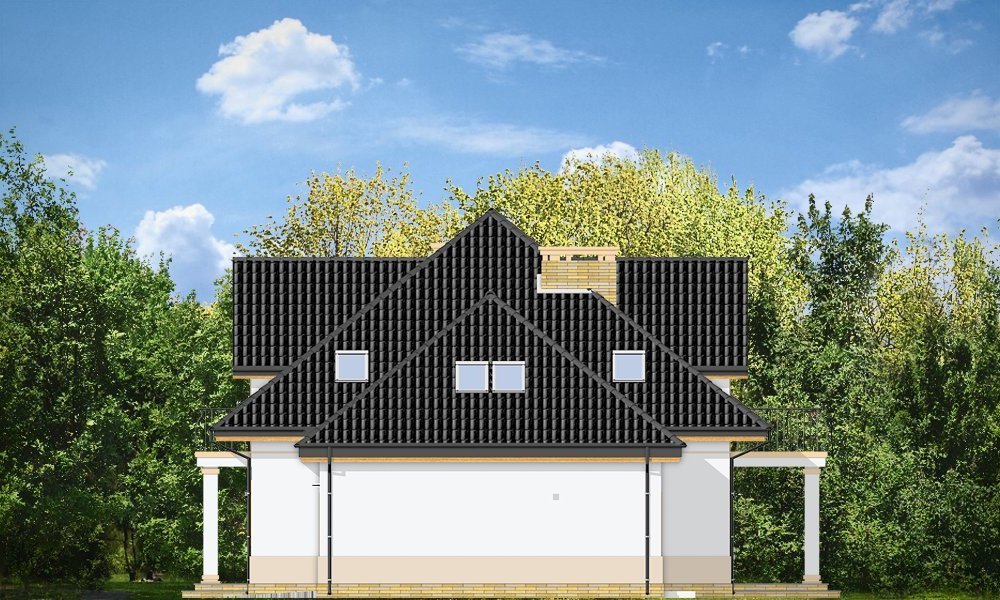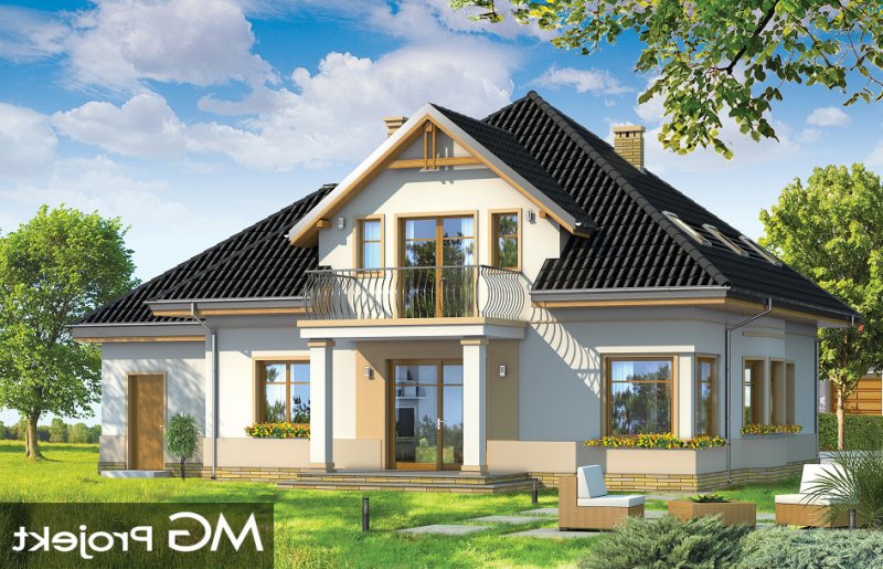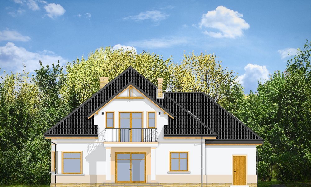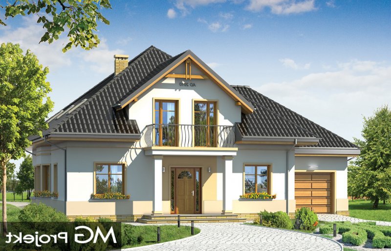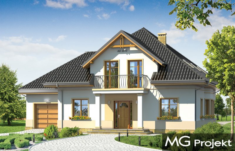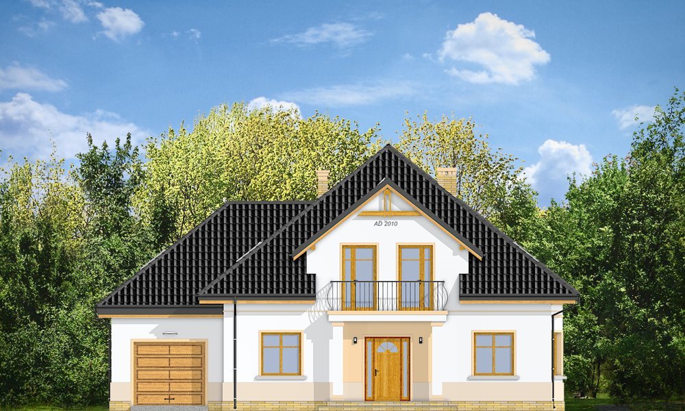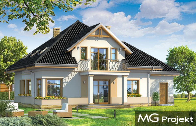 Amanda to budynek jednorodzinny dla cztero-sześcioosobowej rodziny. Dom z poddaszem użytkowym, przykryty czterospadowym dachem. Amanda jest podmiejską willą o nowoczesnej, ale spokojnej architekturze. Zwarta bryła budynku z dobudowanym garażem i dużym zadaszonym podcieniem z tyłu domu, została ciekawie ozdobiona klinkierowymi i drewnianymi okładzinami elewacji, oraz loggiami i podcieniem wejściowym. Masywny ozdobny komin kominka wewnętrznego i zewnętrznego, czy narożne okna - to dodatkowe ozdoby budynku. Przemyślana architektonicznie bryła tworzy spójną, spokojną kompozycyjnie całość. Na parterze zaprojektowano duży salon z jadalnią i holem, z częściowo otwartą kuchnią, oraz dodatkowy pokój - gabinet lub sypialnię gościnną. Na poddaszu znajdują się sypialnie, z odrębnym apartamentem rodziców, z własną łazienką, garderobą i balkonem z widokiem na ogród. W projekcie, przez szerokie przeszklenia na parterze zaplanowano wyjście z salonu do dużego podcienia i na taras ogrodowy. Dostępny jest wariant projektu na płycie fundamentowej oraz wersja odbicia lustrzanego projektu Amanda.