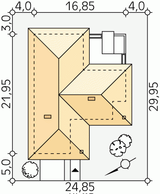 Ściany: 2-warstwowe - bloczek silikatowy + styropian Termo Organika, Stropy: żelbetowe, wylewane, Dach: dachówka ceramiczna, kąt nachylenia 25°