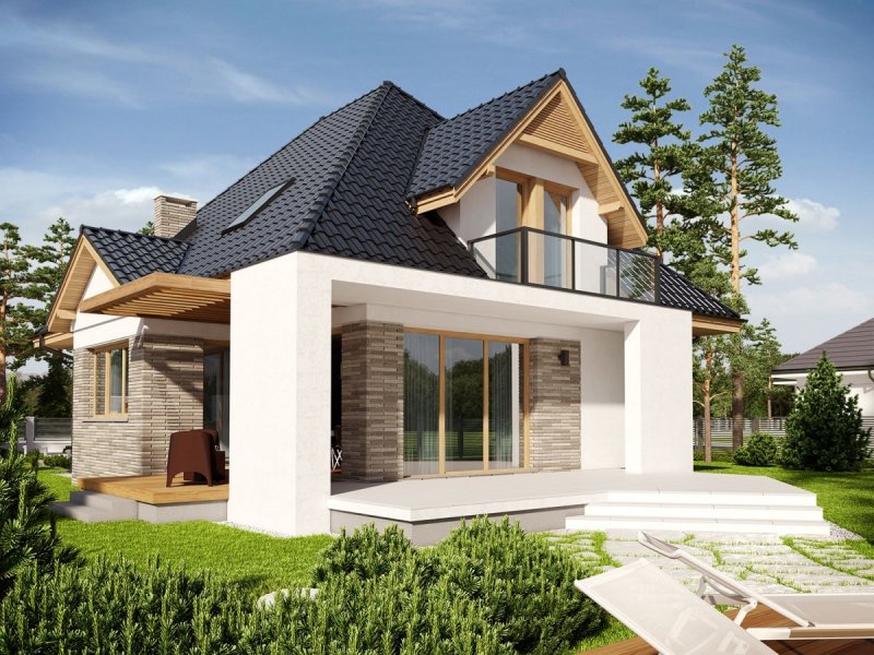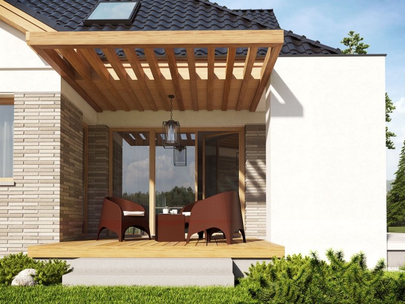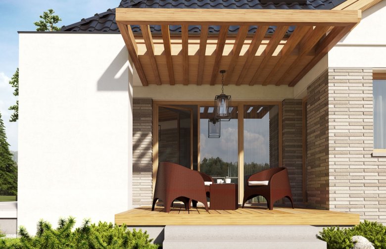 Amira G1 to nowoczesny dom, zaprojektowany z myślą o rodzinie, która ceni swobodę przestrzeni i sprawdzone rozwiązania funkcjonalne. Zgrabna bryła, modne detale i ciekawa kompozycja elewacji sprawiają, że budynek prezentuje się efektownie i elegancko. Atutem projektu jest świetnie zorganizowane wnętrze, które letnią porą harmonijnie powiększa się o przestrzeń przytulnego tarasu, na którym domownicy odpoczywają i dzielą wolny czas z najbliższymi.