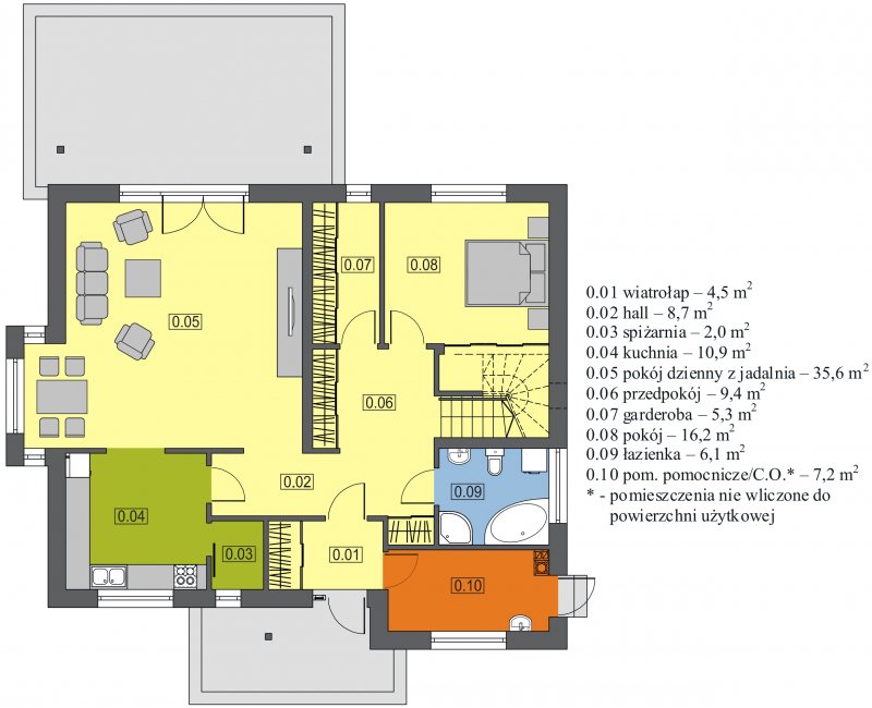 ANIA to dom z poddaszem użytkowym o współczesnej formie i ogromnej popularności. Atrakcyjny wygląd, funkcjonalnie rozmieszczone pomieszczenia zostały zamknięte w nowoczesnej bryle. Dom jest energooszczędny.
