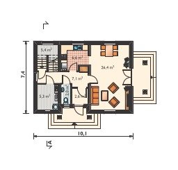 - pokój dzienny 26.4 m2