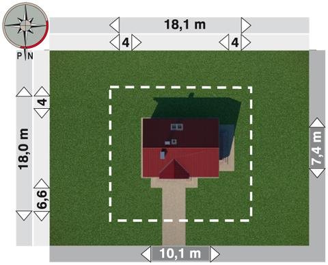 - Min. wymiary działki 18.10x18.00 m