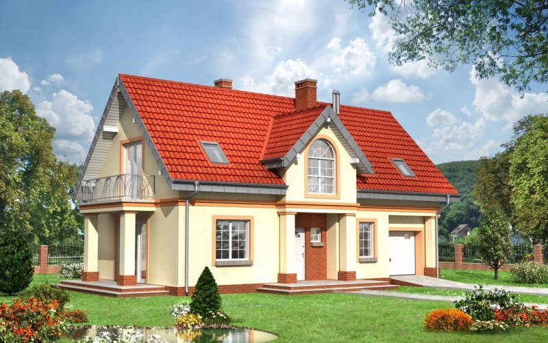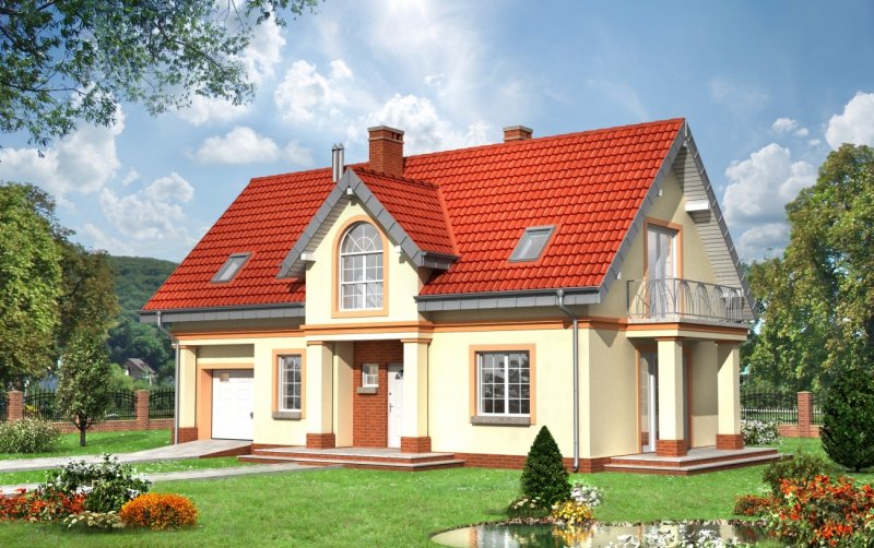Dom parterowy, z uzytkowym poddaszem, z garażem.