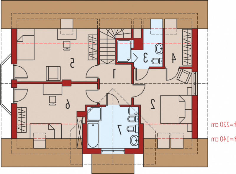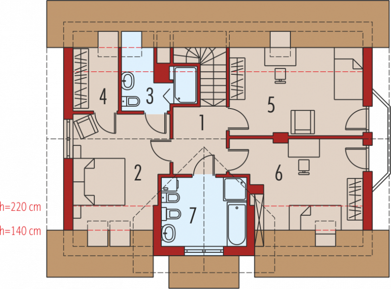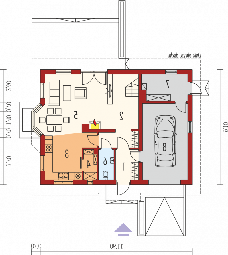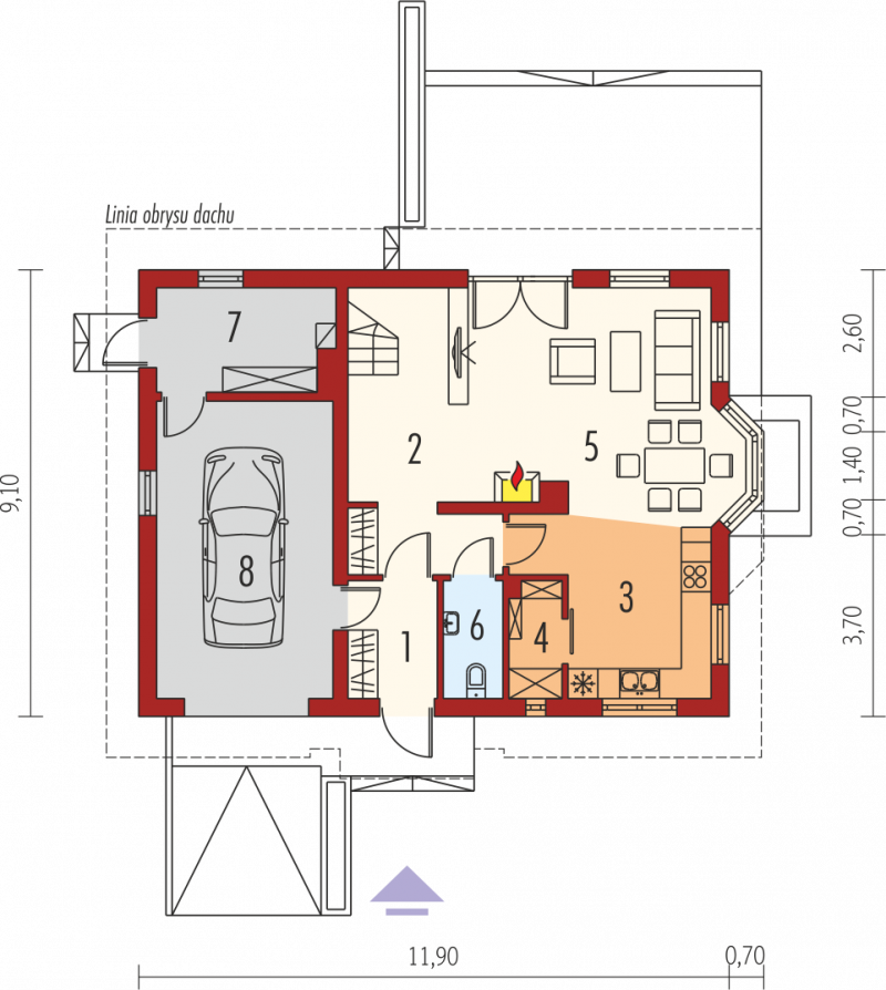 Dom parterowy z poddaszem użytkowym, niepodpiwniczony, z garażem jednostanowiskowym, przeznaczony dla 3-4 osobowej rodziny. Strefę dzienną tworzy otwarta kuchnia połączona z jadalnią i pokojem dziennym oraz toaleta. Na parterze zaplanowano również miejsca na zabudowane szafy w strefie wejściowej. Strefa nocna to wygodna sypialnia dla rodziców z własną łazienką i garderobą oraz dwie sypialnie dzieci, łazienka. Kotłownia umiejscowiona za garażem posiada przejście do strefy mieszkalnej i bezpośrednio na zewnątrz budynku. Dom Arizona G1 spełni oczekiwania miłośników przytulnej, tradycyjnej elegancji. Komfortowy układ funkcjonalny został wyraźnie podzielony na strefy użytkowe – na parterze króluje tempo dnia, na poddaszu – rytm nocy. Atrakcyjną częścią domu jest wykusz, w którym zaplanowano słoneczną jadalnię, w której podczas spożywania posiłków można cieszyć się bliskością otaczającej przyrody. Warto zwrócić uwagę również na reprezentacyjny salon, który szeroko otwiera się na rozległy taras, tworząc harmonijne połączenie domu z ogrodem. Elewacja utrzymana w ciepłej kolorystyce sprawia, że z zewnątrz dom prezentuje się równie imponująco. Istnieje możliwość: - podpiwniczenia budynku