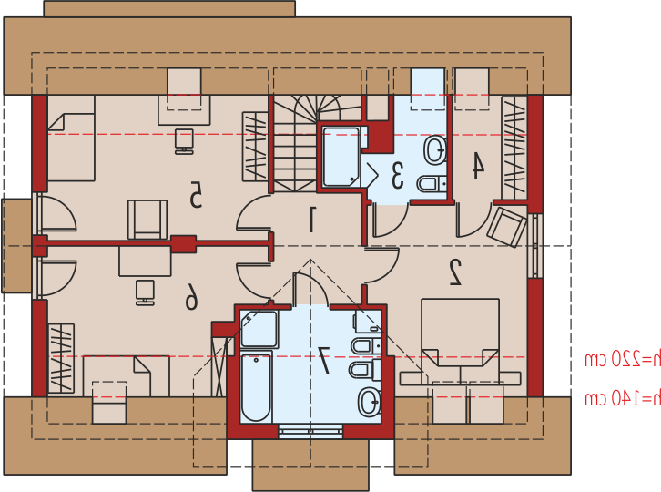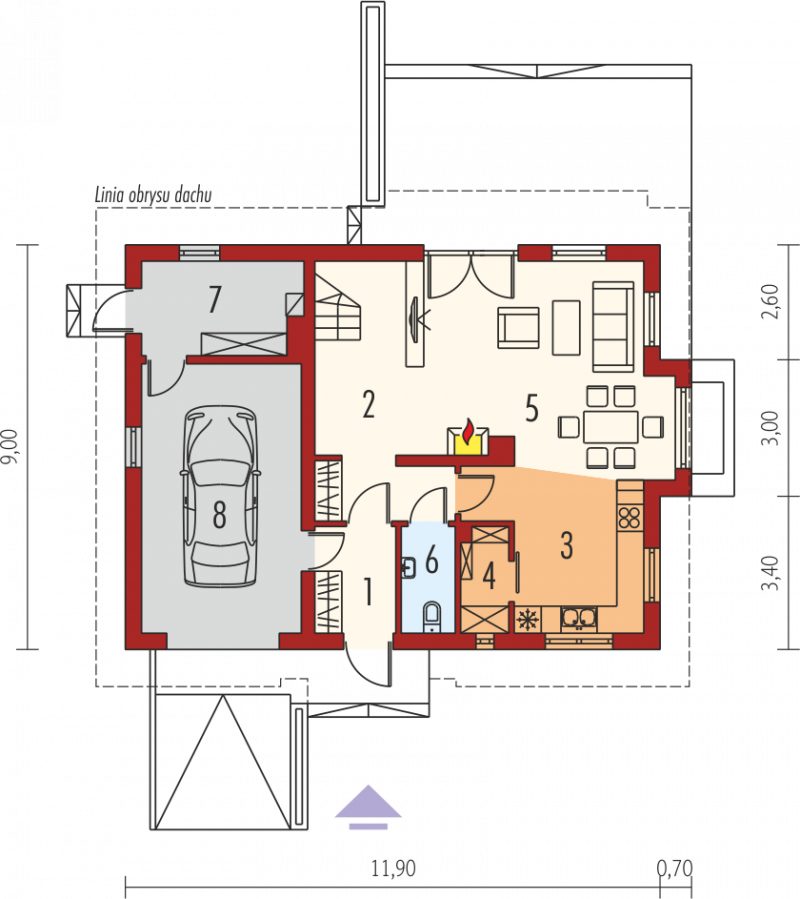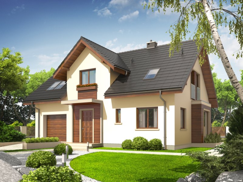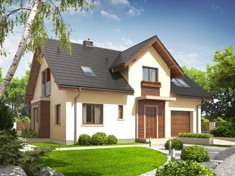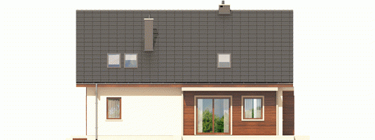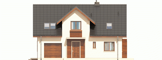 Dom parterowy z poddaszem użytkowym, niepodpiwniczony, z garażem jednostanowiskowym, przeznaczony dla 3-4 osobowej rodziny. Strefę dzienną tworzy otwarta kuchnia połączona z jadalnią i pokojem dziennym oraz toaleta. Na parterze zaplanowano również miejsca na zabudowane szafy w strefie wejściowej. Strefa nocna to wygodna sypialnia dla rodziców z własną łazienką i garderobą oraz dwie sypialnie dzieci z odrębną łazienką. Kotłownia umiejscowiona za garażem posiada przejście do strefy mieszkalnej i bezpośrednio na zewnątrz budynku. Dom Arizona II spełni oczekiwania miłośników szykownej elegancji. Komfortowy układ funkcjonalny został wyraźnie podzielony na strefy użytkowe – na parterze króluje tempo dnia, na poddaszu – rytm nocy. Atrakcyjną częścią domu jest wykusz, w którym zaplanowano jasną i przytulną jadalnię, w której podczas spożywania posiłków można cieszyć się bliskością otaczającej przyrody. Warto zwrócić uwagę również na reprezentacyjny salon, który szeroko otwiera się na rozległy taras, tworząc harmonijne połączenie domu z ogrodem. Smakowity efekt całości dopełnia atrakcyjna elewacja utrzymana w waniliowo-orzechowej kolorystyce Istnieje możliwość: - podpiwniczenia budynku