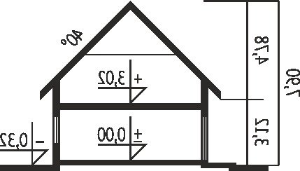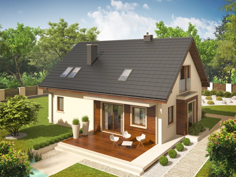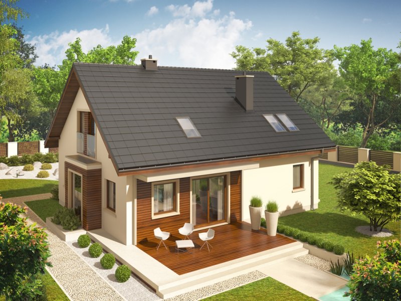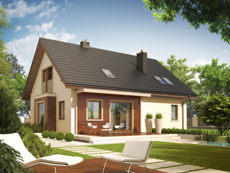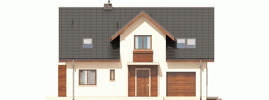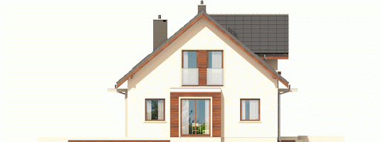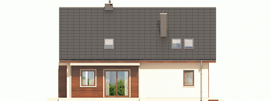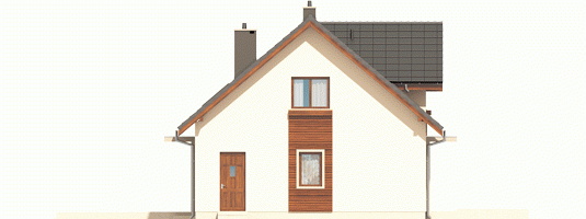 Dom zaprojektowany w technologii murowej ze stropem gęstożebrowym. Schody wewnętrzne drewniane. Dach o konstrukcji drewnianej pokryty dachówką płaską lub inną o podobnych parametrach. Elewacje wykończono tynkiem mineralnym i okładziną drewnianą. Cokoły kamienne lub wykończone tynkiem. Stolarka okienna drewniana lub PCV.