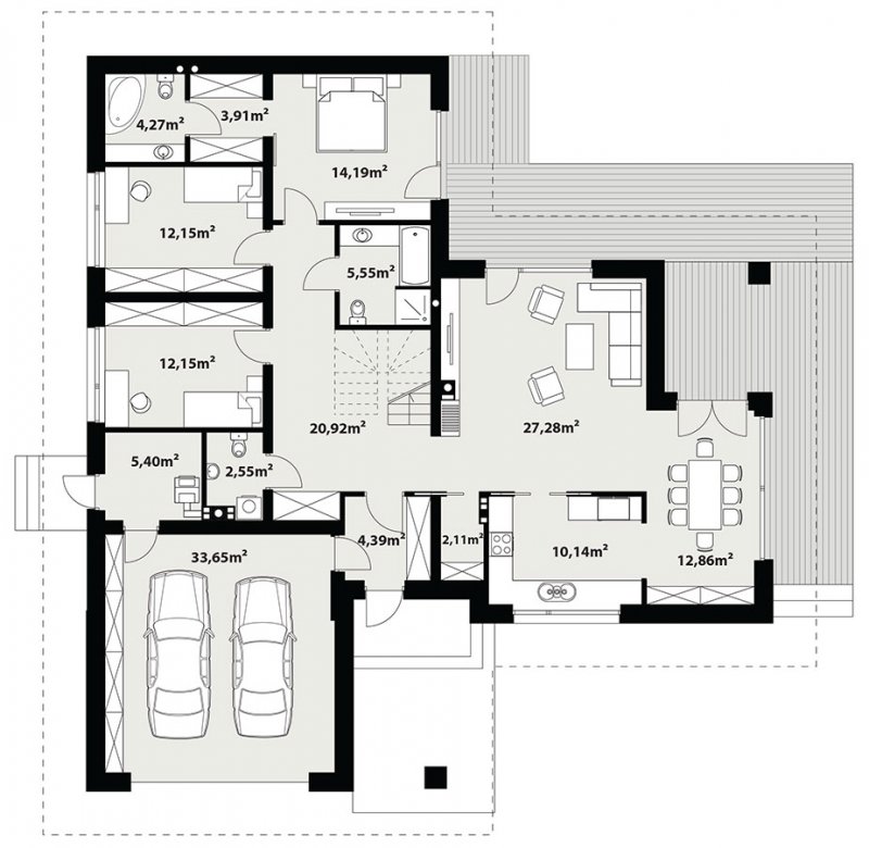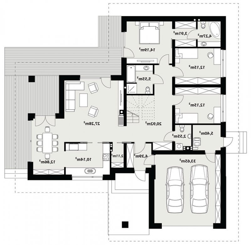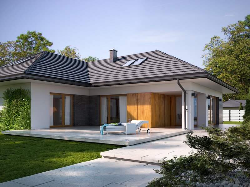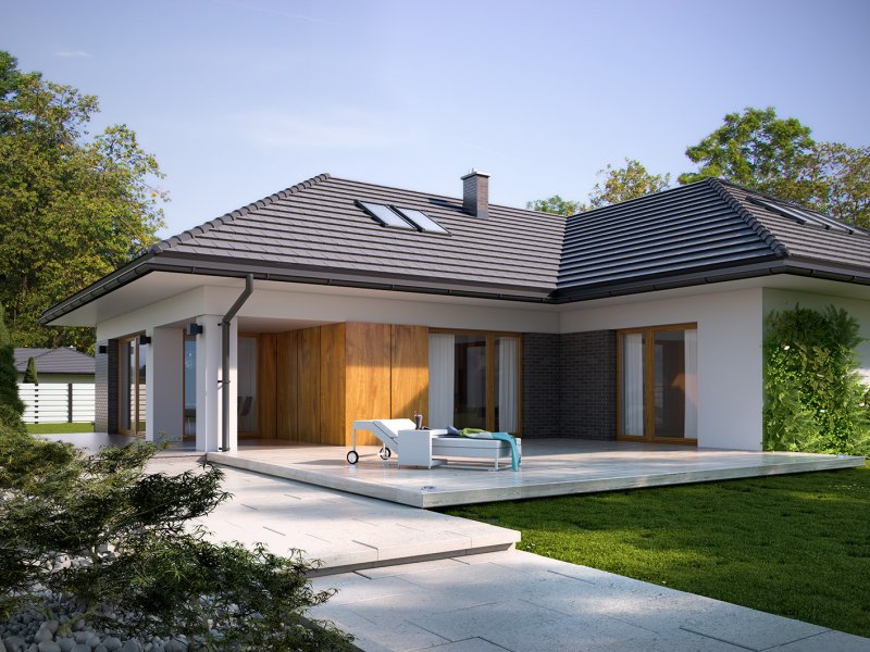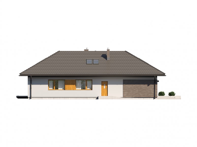 Arteo 4 to jednorodzinny budynek mieszkalny, parterowy z użytkowym poddaszem i dwustanowiskowym garażem. Bogaty i funkcjonalny układ pomieszczeń gwarantuje optymalny komfort wieloosobowej rodzinie. Ergonomicznie zaprojektowana i wyraźnie podzielona przestrzeń mieszkalna składa się ze strefy dziennej, nocnej i gospodarczej. Najbardziej reprezentacyjna część domu, to przestronny salon połączony z jadalnią, który otwiera się na duży, zadaszony taras oraz kuchnia ze spiżarnią i wc. Oprócz części dziennej przewidziano strefę intymną domu, która składa się na parterze z 3 sypialni i łazienki, przy czym główna sypialnia, ma osobną łazienkę i garderobę. Na poddaszu także przewidziano 3 sypialnie i łazienkę. Dużą kotłownię, na każdy rodzaj paliwa oraz dwustanowiskowy garaż zlokalizowano w części gospodarczej domu. Geometria rzutu, harmonia bryły oraz prostota nowoczesnych elewacji czynią ten dom nie tylko łatwym w eksploatacji i utrzymaniu ale również niezwykle eleganckim.