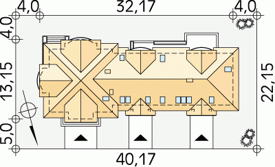 Ściany: 2-warstwowe - pustak ceramiczny + styropian, Stropy: żelbetowe, wylewane, Dach: dachówka ceramiczna, kąt nachylenia 40°