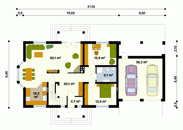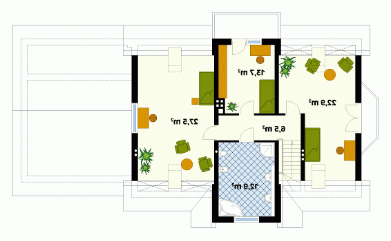 Dom jednorodzinny, podpiwniczony z użytkowym poddaszem. Budynek o podmiejskim charakterze i tradycyjnej formie.