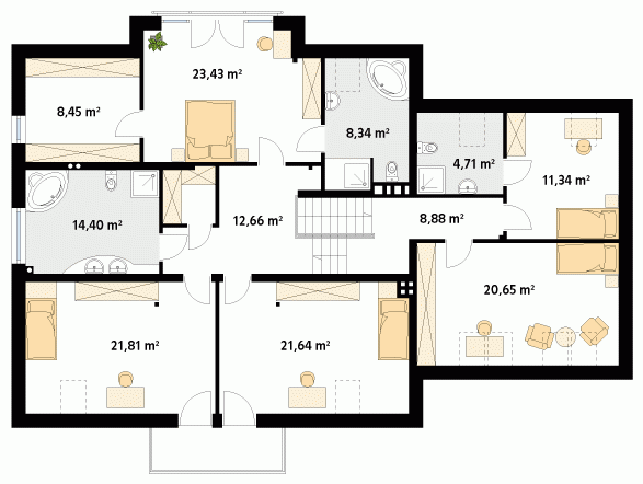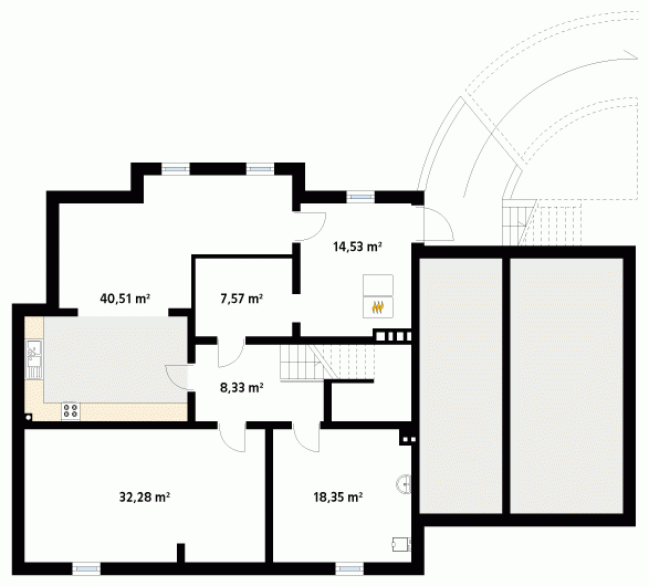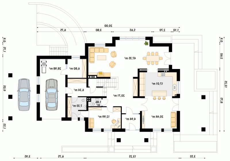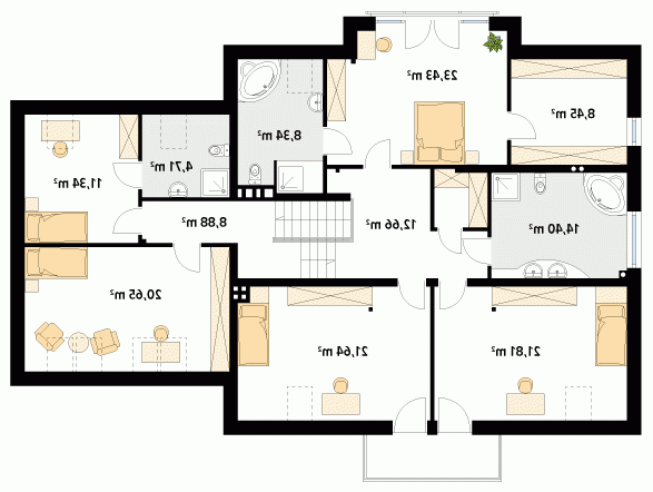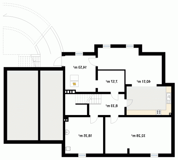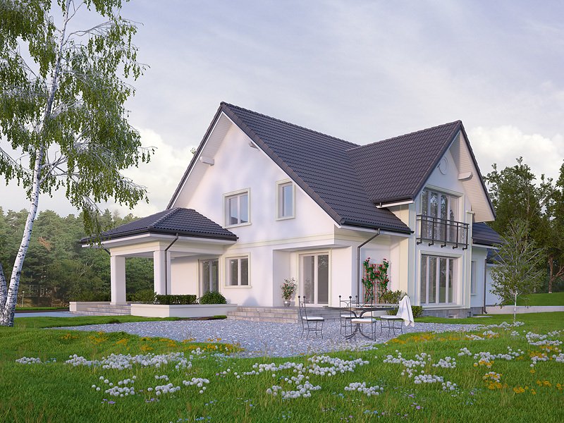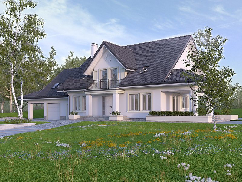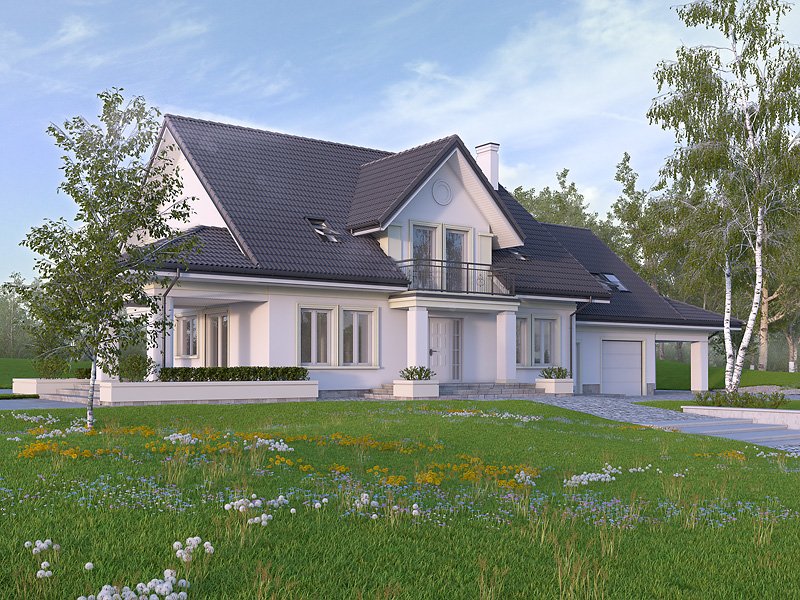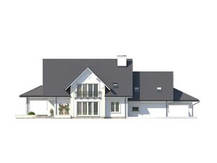 Duży reprezentacyjny dom przeznaczony dla wielopokoleniowej rodziny. Na poddaszu zaprojektowano dodatkowo pokój gościnny z oddzielną łazienką. W piwnicy znajdują się niezbędne pomieszczenia gospodarcze do obsługi domu. Na parterze na uwagę zasługuje rozbudowana część kuchenna która jest jednocześnie pokojem rodzinnym.