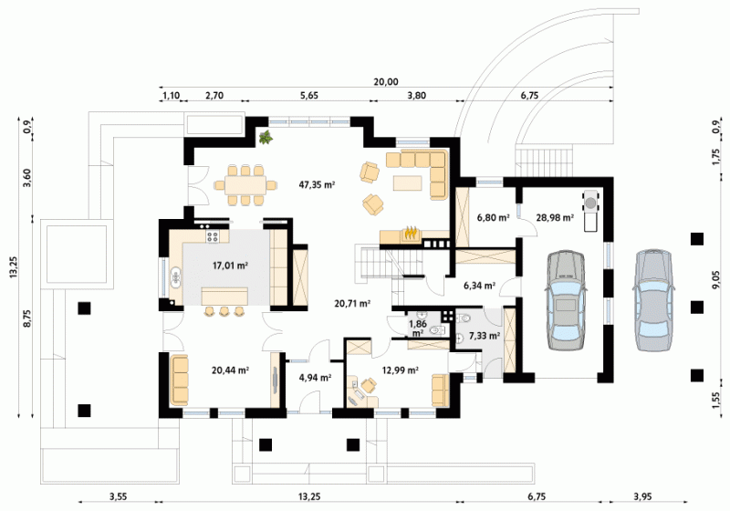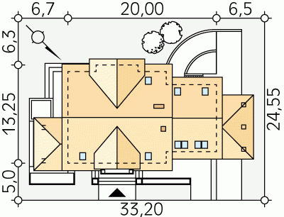 - Min. wymiary działki 33.20x24.55 m