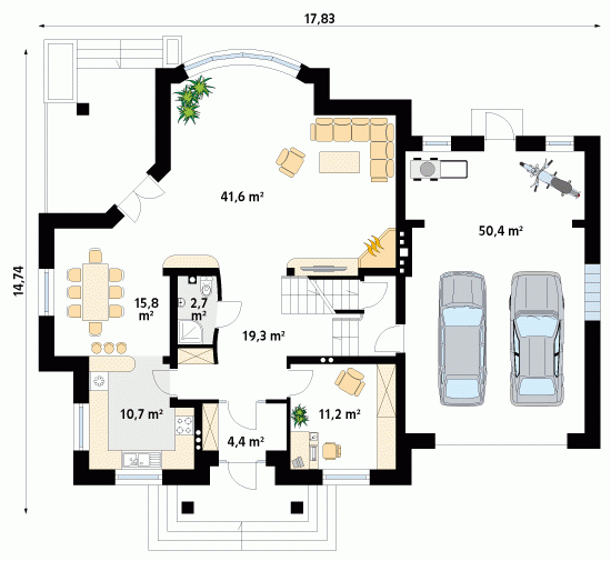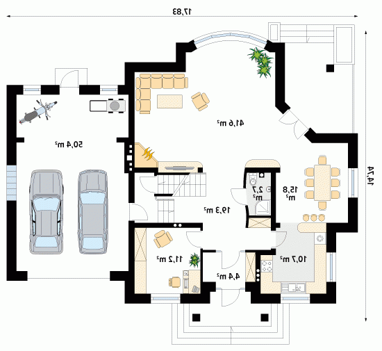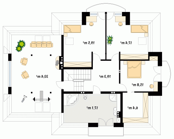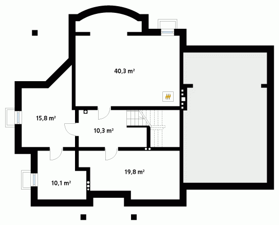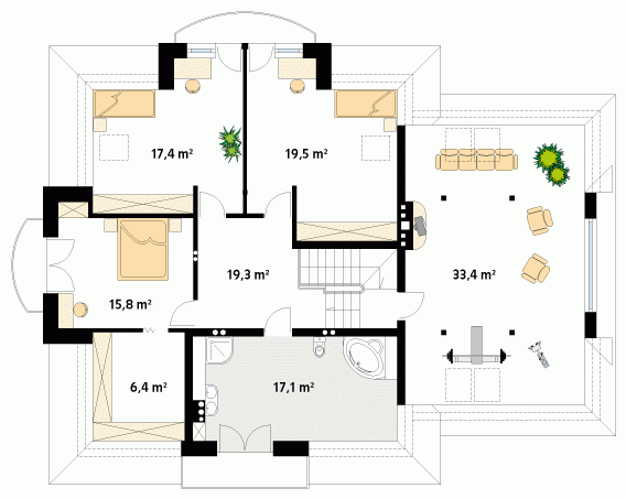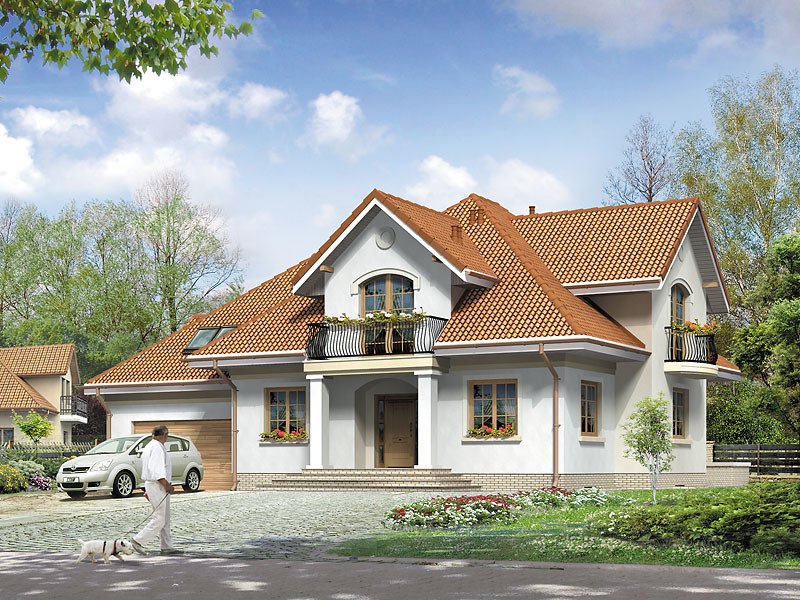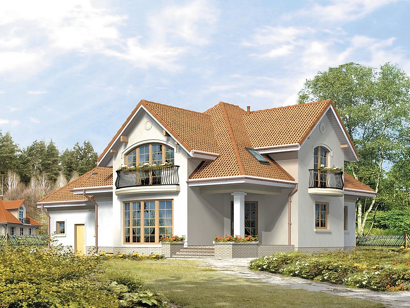 Budynek jednorodzinny z użytkowym poddaszem, częściowo podpiwniczony. Na parterze znajduje się wygodna część dzienna z gabinetem do pracy lub dodatkową sypialnią. Poddasze z trzema sypialniami i strychem.