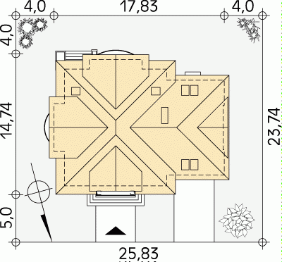 Ściany: 3-warstwowa - pustak ceramiczny + wełna mineralna, Stropy: żelbetowe, wylewane i gęstożebrowe, Dach: dachówka ceramiczna, kąt nachylenia 40°