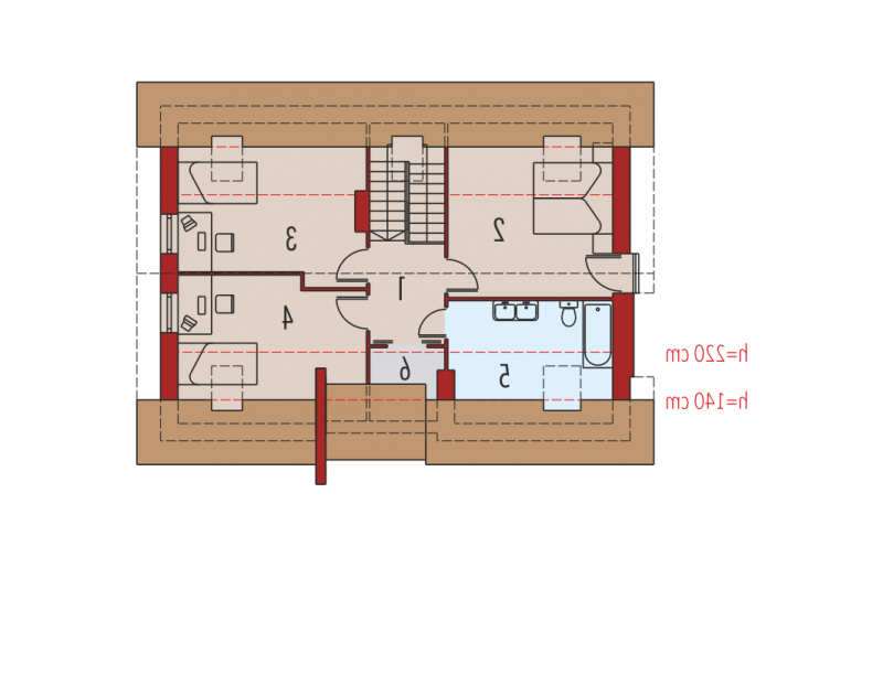 Strefa nocna – poddasze: trzy sypialnie oraz łazienka