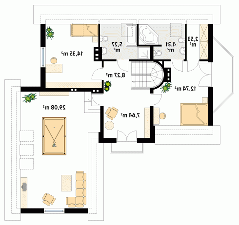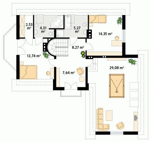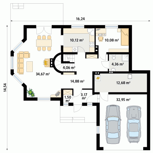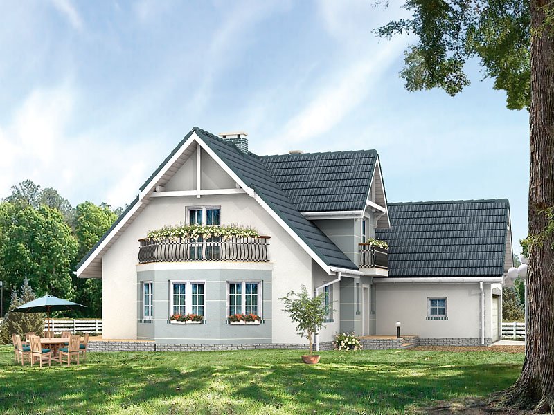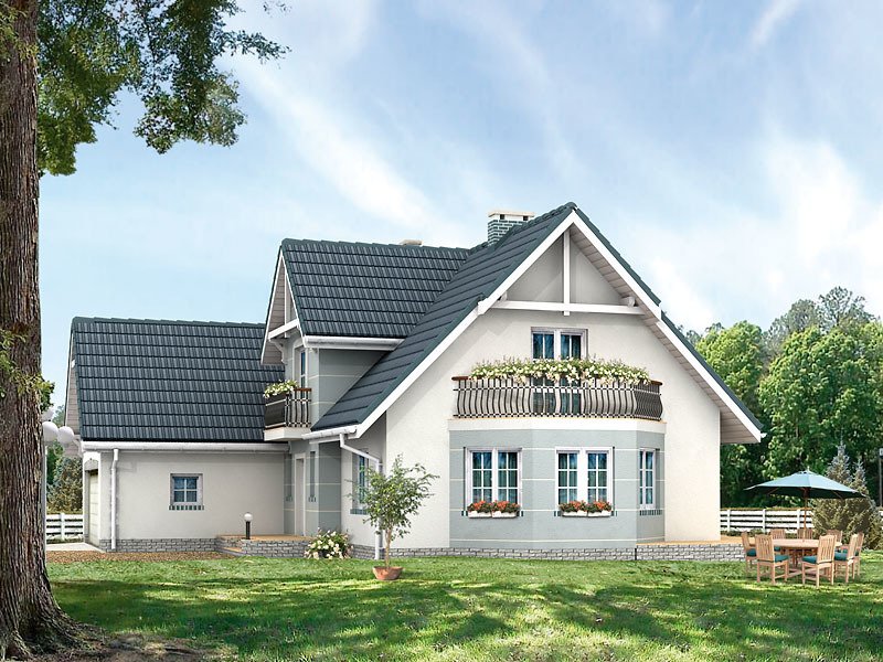 Dom mieszkalny jednorodzinny parterowy z użytkowym poddaszem. Przeznaczony dla 3 – 4-osobowej rodziny. Nad garażem uzyskano wielofunkcyjną przestrzeń rekreacyjną lub pokój.