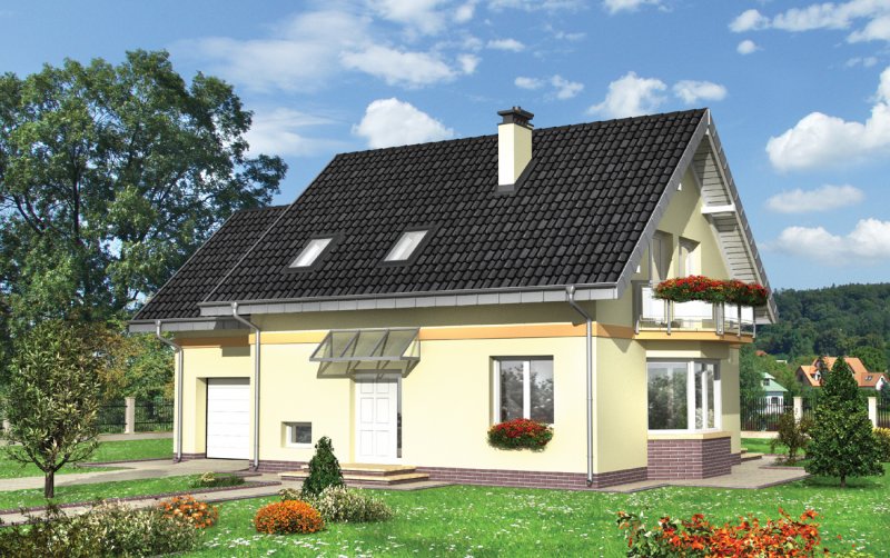 Dom parterowy, z użytkowym poddaszem, z garażem.