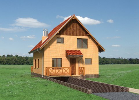 Budynek dla 4-5 osobowej rodziny. W piwnicach znajduje się kotłownia, garaż, schowek i pomieszczenie gospodarcze. Na parterze zlokalizowano hol, jadalnię, kuchnię, garderobę, pokój dzienny i w.c. Na poddaszu znajdują się 3 pokoje sypialne, garderoba, łazienka i przedpokój. Bryłę budynku stanowi prostopadłościan, przykryty dachem dwuspadowym o kącie nachylenia połaci 45°. Prostokątny obrys budynku o niewielkich gabarytach umożliwia realizację na wąskiej działce